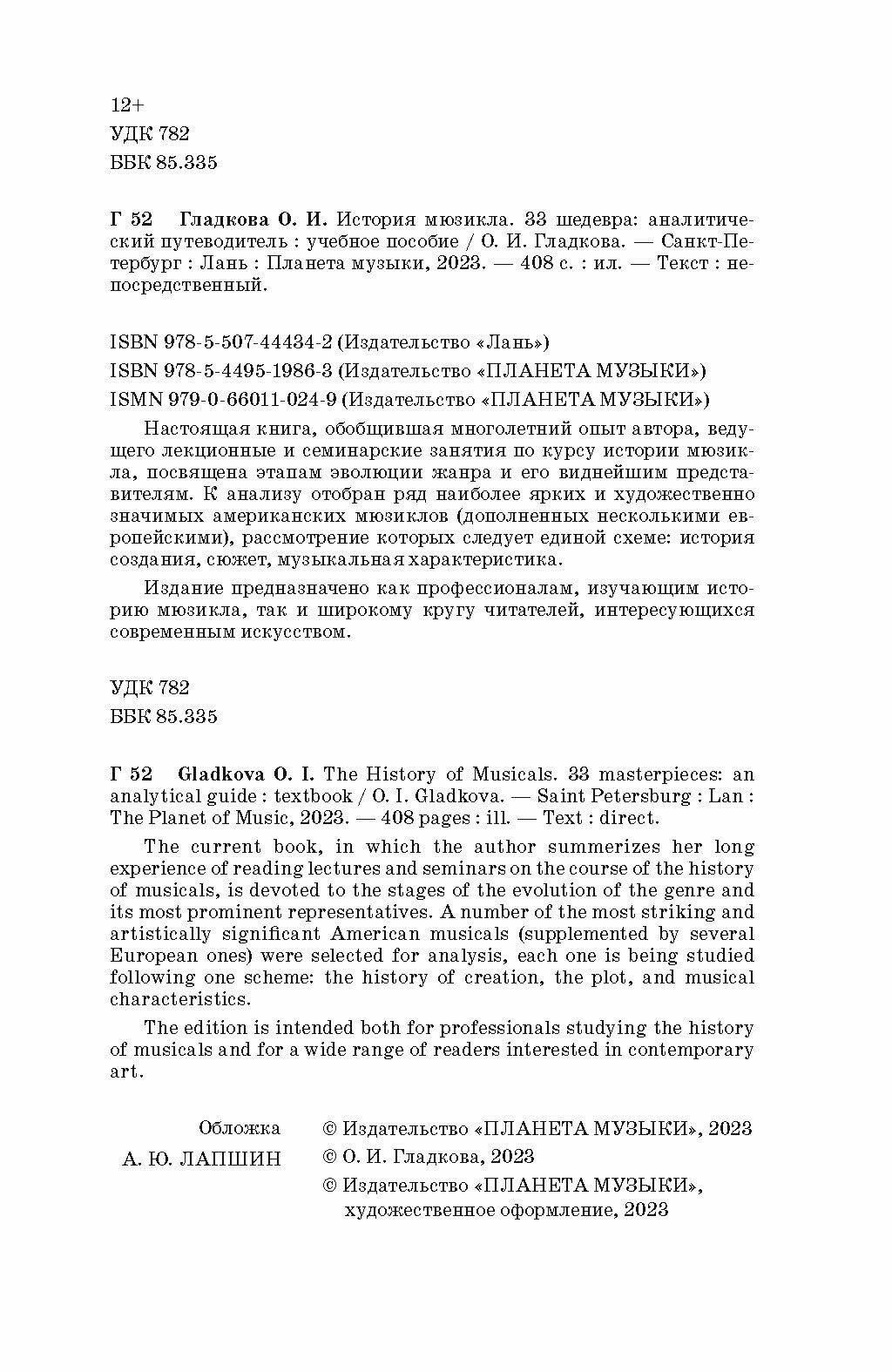 История мюзикла. 33 шедевра: аналитический путеводитель. Учебное пособие (Гладкова Ольга Игоревна); Планета Музыки, 2023