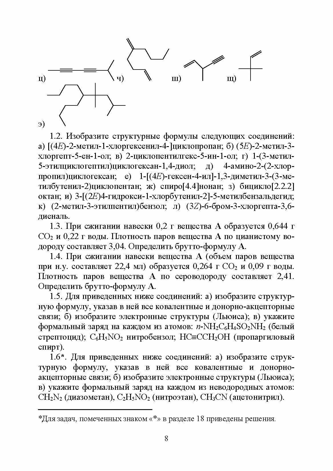 кроме того, внутри каждого раздела задачи разделены по сложности на три уровня – «базовый», «продвинутый», «высший». Такое разделение, конечно, в большой мере является условным и субъективным, но призвано удовлетворить потребности преподавателей и обучающихся в получении адекватного конкретным уровням сложности фонда оценочных средств по дисциплине «Органическая химия». Для некоторых задач приведены решения. Соответствует современным требованиям Федерального государственного образовательного стандарта среднего профессионального образования и профессиональным квалификационным требованиям. Учебное пособие подготовлено для студентов образовательных учреждений среднего профессионального образования, обучающихся по специальностям, входящим в УГСН: «Химические технологии», «Промышленная экология и биотехнологии», «Технологии материалов», «Техносферная безопасность и природообустройство», «Клиническая медицина», «Фармация» и др.