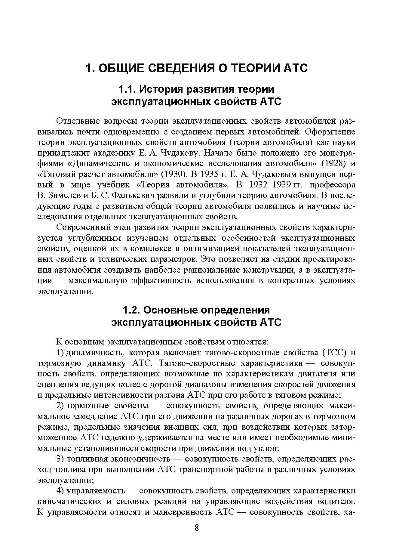 Учебное пособие содержит информацию о динамичности и топливной экономичности автотранспортных средств. Приведены определения свойств, оценочные показатели, теоретические основы физических процессов, формирующих эксплуатационные свойства, теоретические методы расчета оценочных показателей, анализ влияния конструктивных и эксплуатационных факторов на показатели эксплуатационных свойств, основы экспериментальных методов определения оценочных показателей.