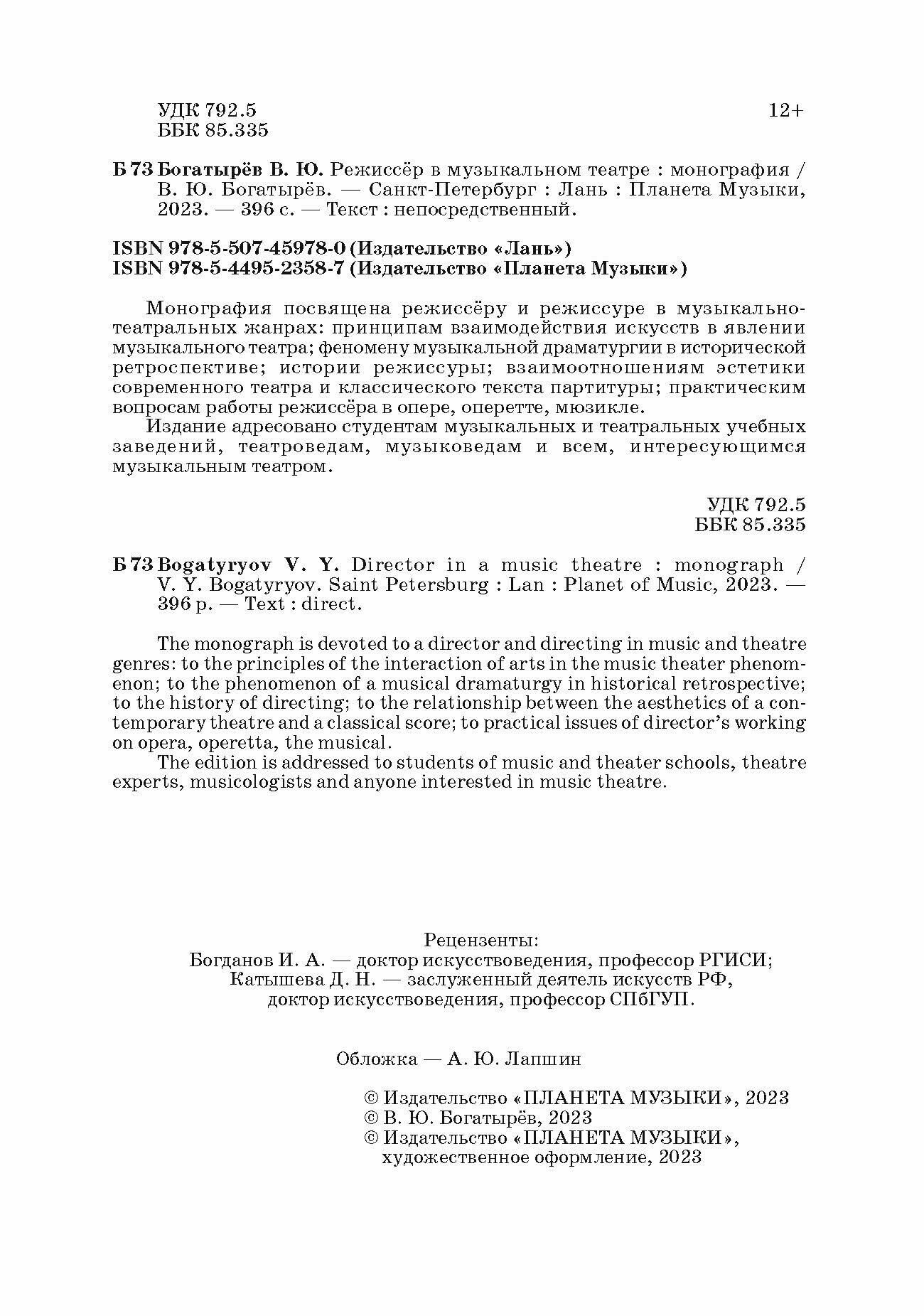 Режиссёр в музыкальном театре. Монография (Богатырёв Всеволод Юрьевич); Планета Музыки, 2023