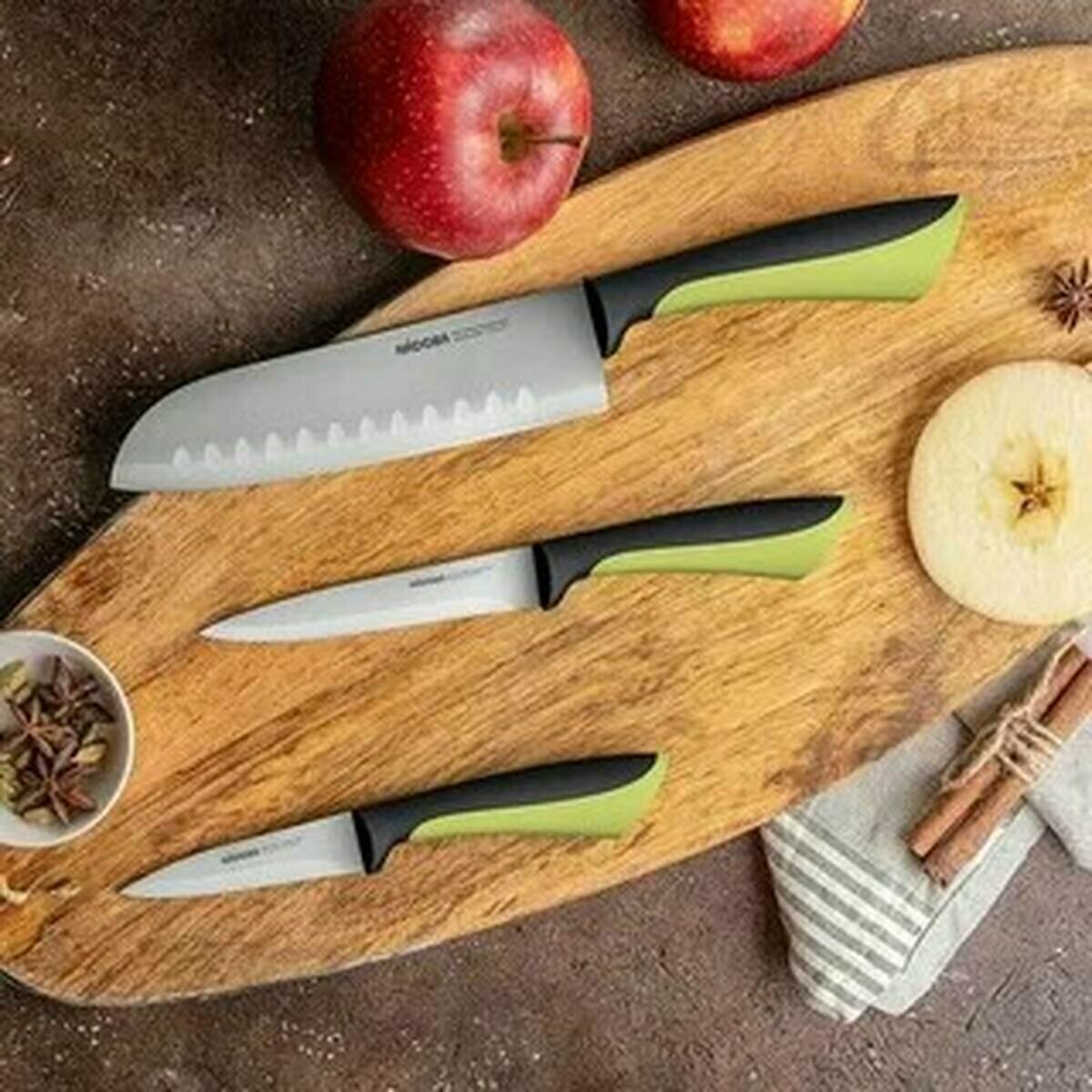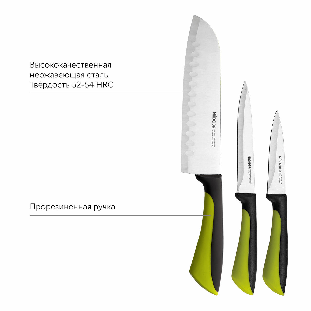 Набор из 3 кухонных ножей серии JANA от бренда NADOBA – идеальное решение для всех, кто ценит комфорт и удобство в кухонных делах. Эти ножи не только помогут быстро и легко приготовить любимые блюда, но и станут стильным дополнением вашей кухни.