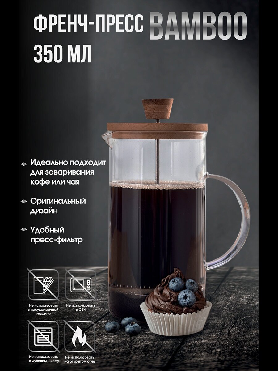 На сегодняшний день товар «Френч пресс чайник 350 мл с крышкой из бамбука чайник заварочный стеклянный BAMBOO PROFFI PKT0255 Hoff» можно купить с кешбеком в 1 магазине: Яндекс.Маркет