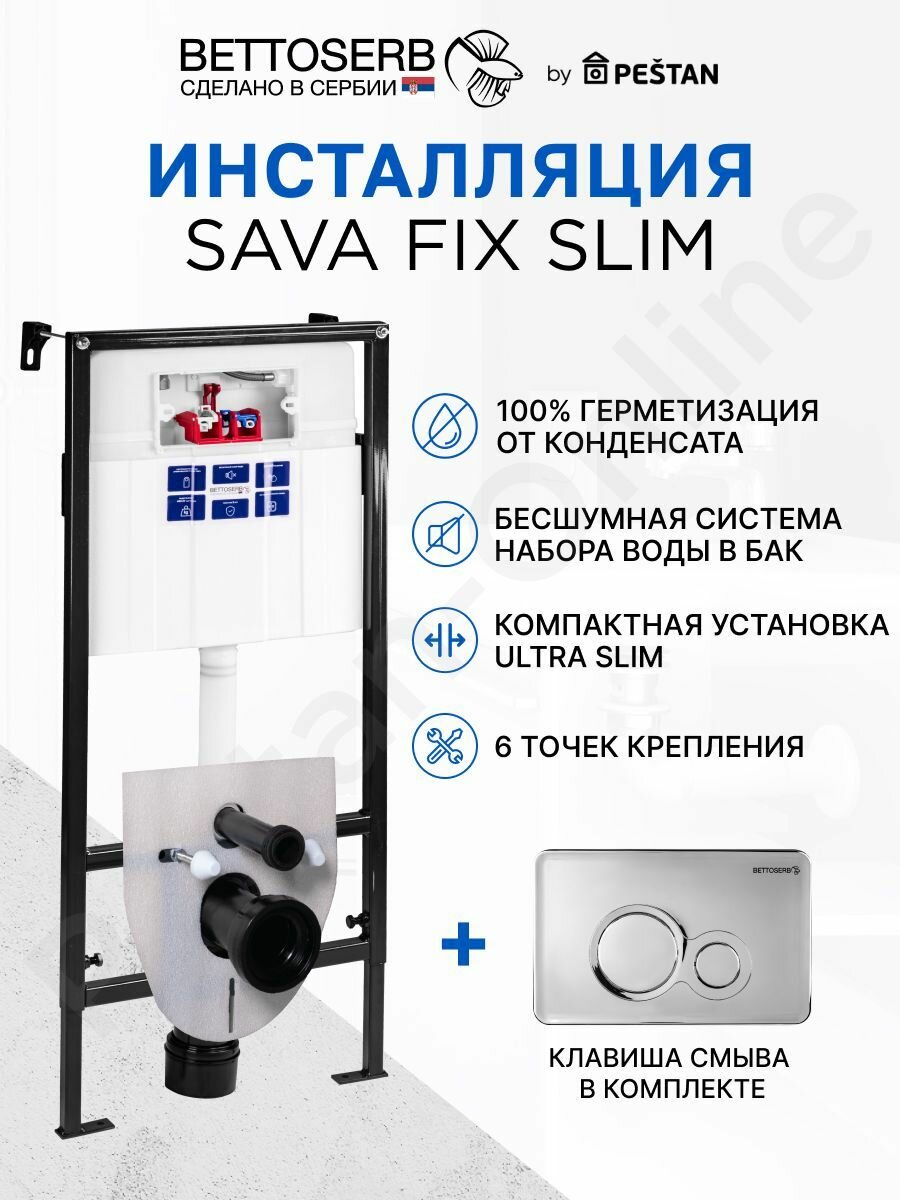 Инсталляция Pestan Sava Fix Slim SET40006464 для унитаза с клавишей смыва Хром глянец