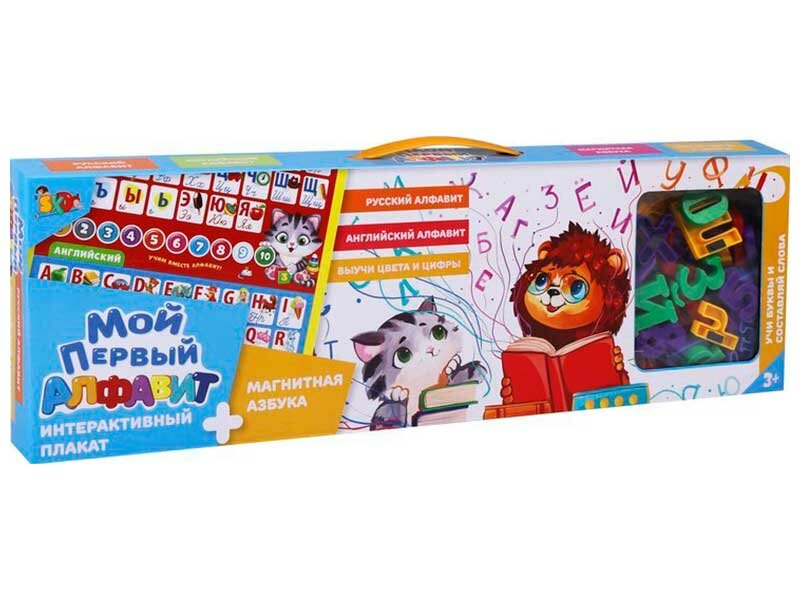 Обучающий плакат поможет ребенку с легкостью выучить названия букв русского и английского алфавита, счет и цвета! В комплекте прилагаются магнитные элементы (33 буквы русского алфавита, 10 цифр, 5 арифметических знаков). Из них можно составлять слова и простые арифметические примеры.