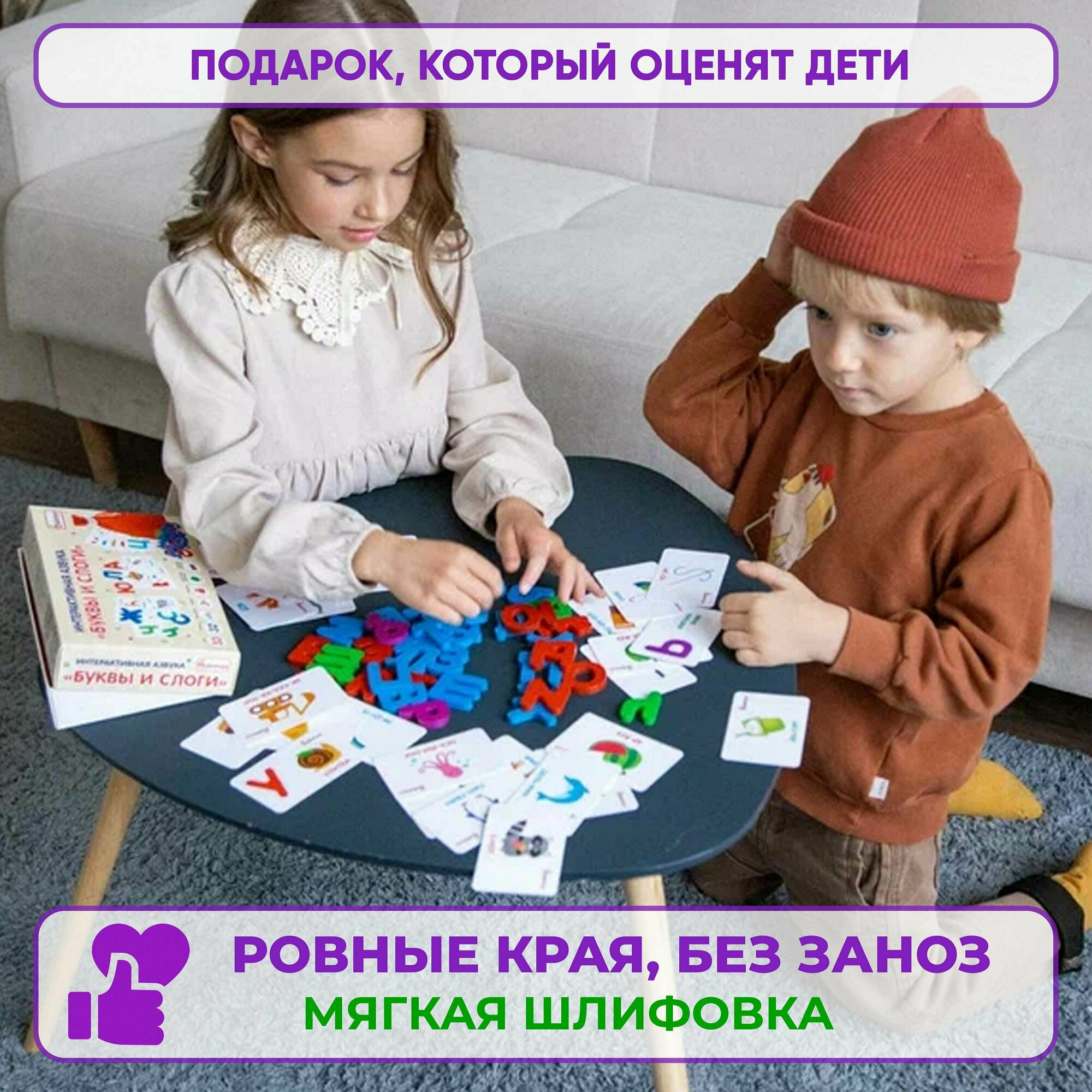 - Очень приятная игра. Были в комплекте специальные кусочки наждачки, чтобы обработать царапины на буквах (для детей само по себе развивающее занятие). Можно играть как в тактильное лото.