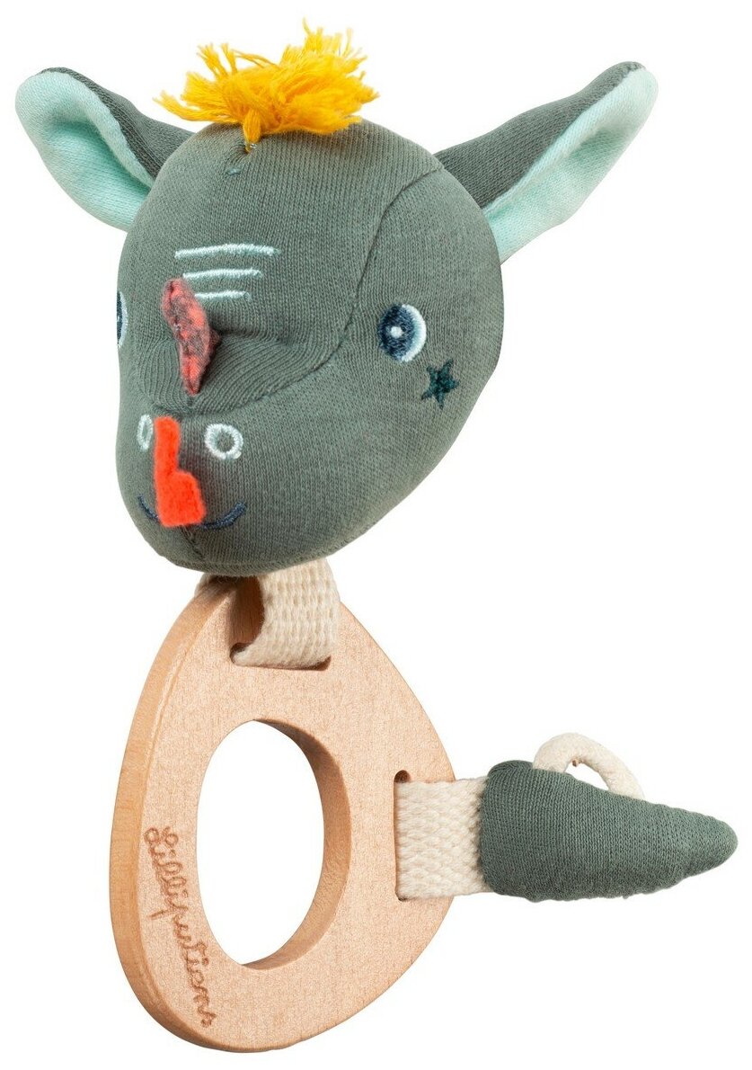 Мягкая мордочка, бодрящий звук и деревянное колечко-прорезыватель вместо соски - вот что превращает эту погремушку в настоящее событие для самых маленьких. Состоит их биологического хлопка и дерева с сертификатом FSC.