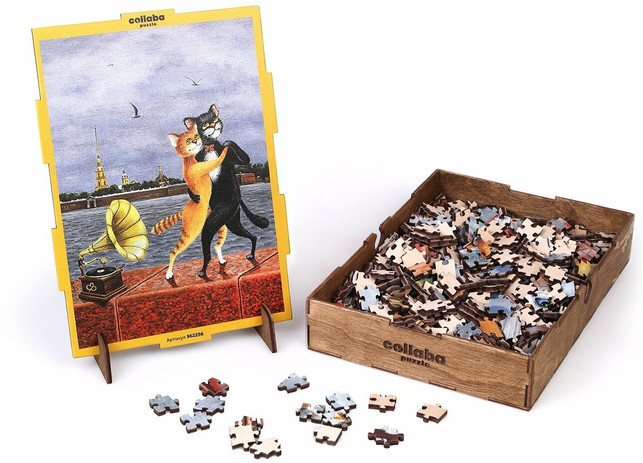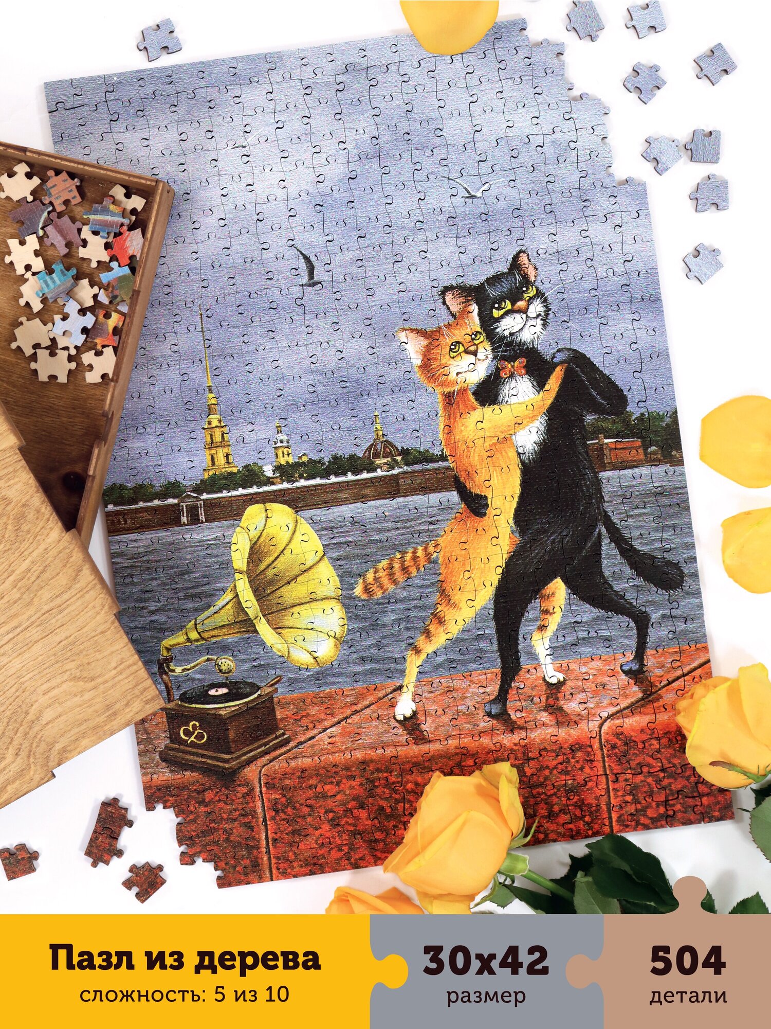Деревянный пазл "Танго над Невой" из серии "Петербурские коты Елены Романовой" посвящается всем, кто любит Санкт-Петербург! У пазла классический вариант замка и классическая форма деталей. Собирать такой пазл сложнее, чем фигурный, но тем интересней и увлекательней становится сам процесс сборки, а приятный запах дерева добавляет в него особое ощущение теплоты и уюта.