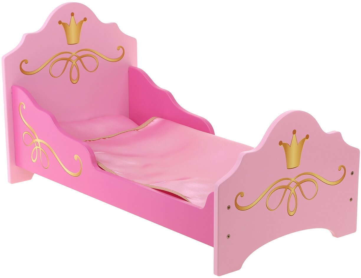 Кроватка из коллекции подходит для кукол и других игрушек высотой до 45 см. Вместе с кроваткой прилагается комплект атласного постельного белья: матрас, подушка и одеяло, выполненные в оттенках розового цвета – популярного и любимого среди девочек.