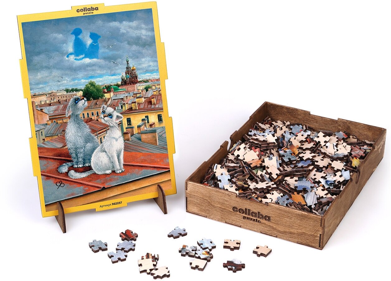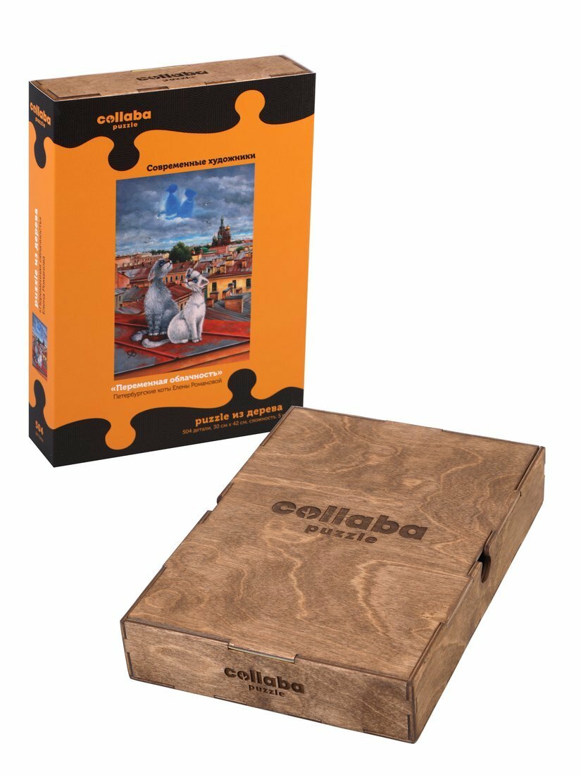Деревянный пазл "Переменная облачность" из серии "Петербурские коты Елены Романовой" посвящается всем, кто любит Санкт-Петербург! У пазла классический вариант замка и классическая форма деталей. Собирать такой пазл сложнее, чем фигурный, но тем интересней и увлекательней становится сам процесс сборки, а приятный запах дерева добавляет в него особое ощущение теплоты и уюта.