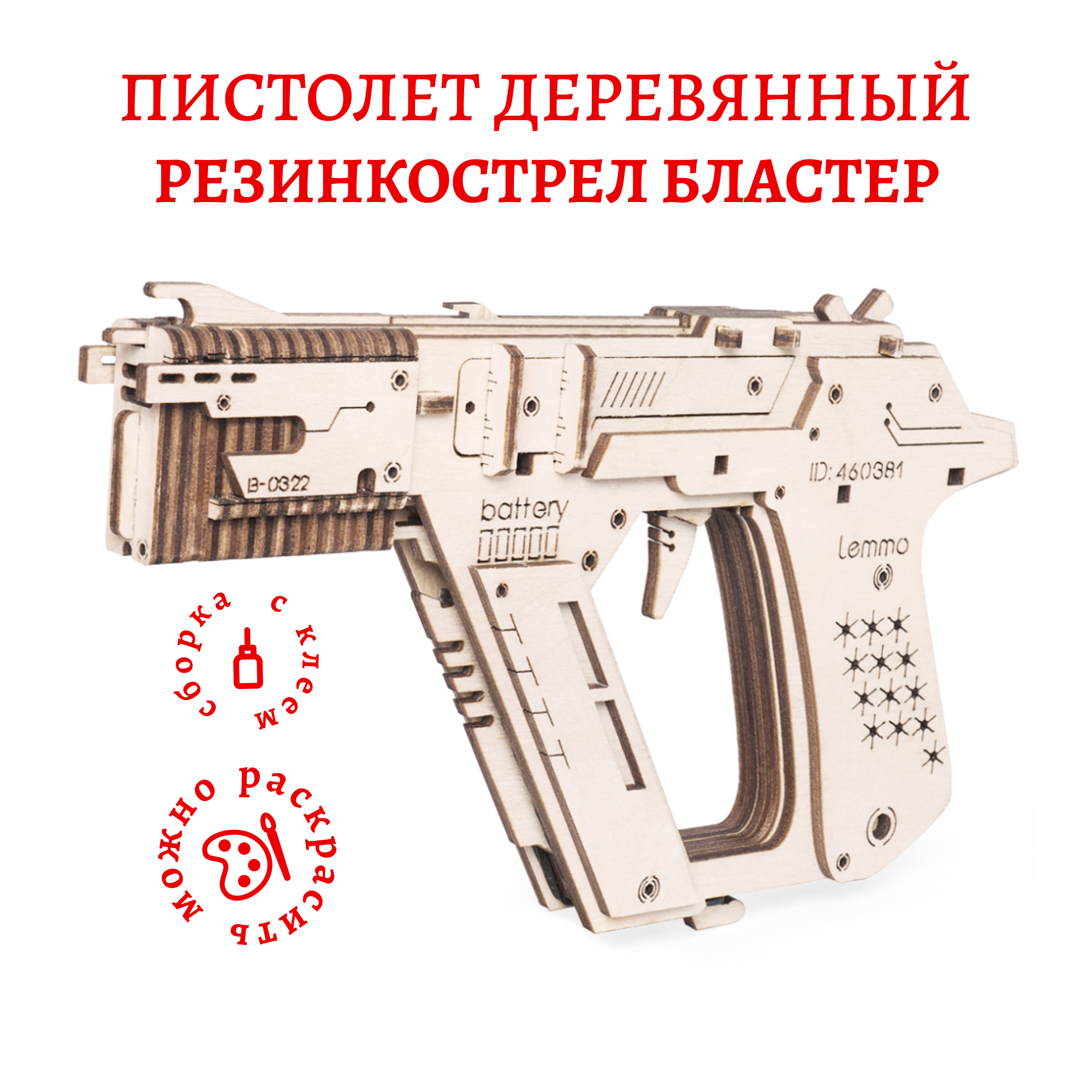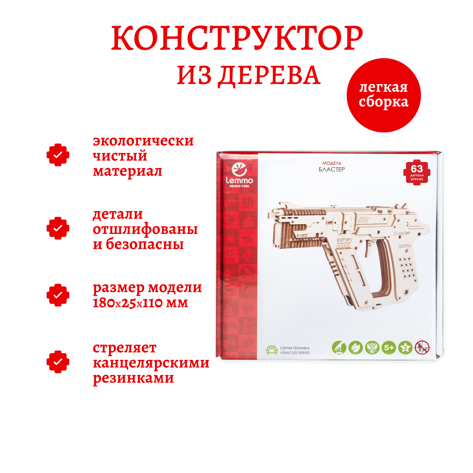 Деревянная игрушка Lemmo Конструктор Пистолет резинкострел Бластер