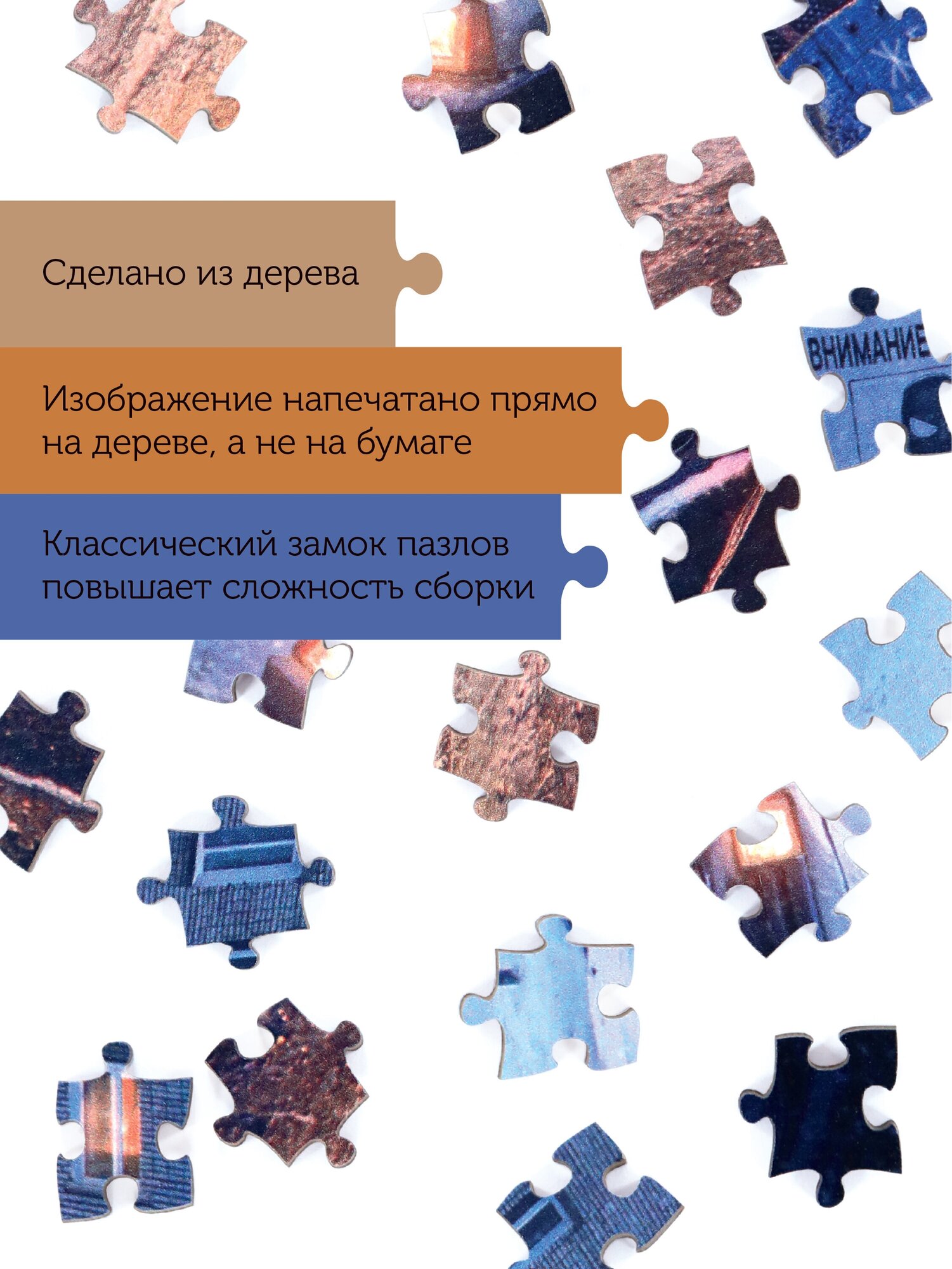Собранный пазл, при желании, можно склеить, поместить в рамку и повесить на стену (основа для склеивания и рамка не входят в комплект). Деревянный пазл станет универсальным подарком на любой праздник!