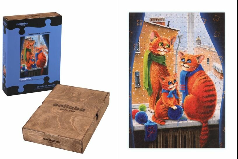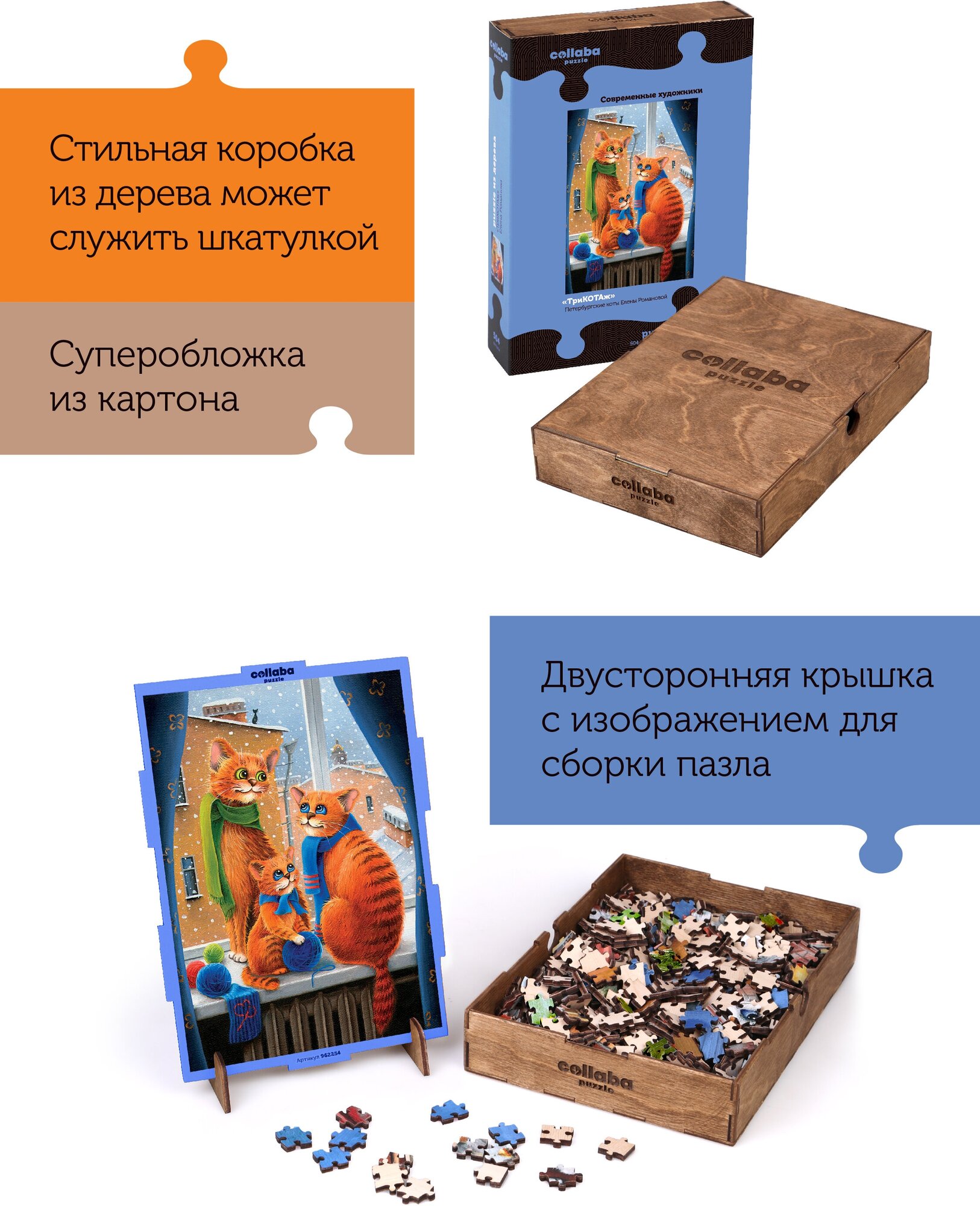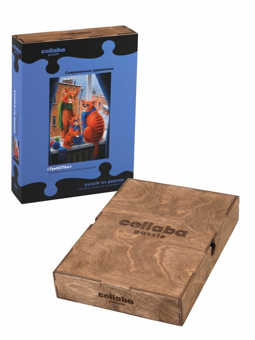 Деревянный пазл "триКОТАж" из серии "Петербурские коты Елены Романовой" посвящается всем, кто любит Санкт-Петербург! У пазла классический вариант замка и классическая форма деталей. Собирать такой пазл сложнее, чем фигурный, но тем интересней и увлекательней становится сам процесс сборки, а приятный запах дерева добавляет в него особое ощущение теплоты и уюта.