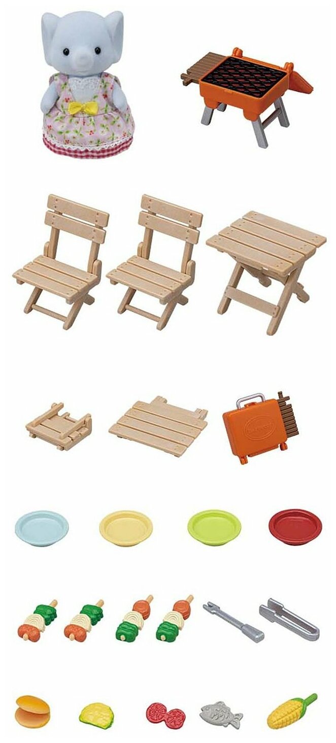 Проводите больше времени на природе вместе с набором Sylvanian Families «Пикник с барбекью для друзей». Приготовьте вкусный ужин на гриле, присядьте за столик и поешьте. Играйте самостоятельно с малышкой Мириам или добавляйте в игру больше персонажей, мебели и аксессуаров.