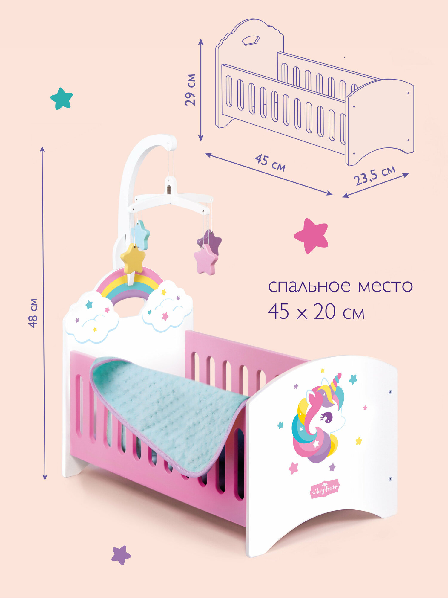 Кроватка для куклы Mary Poppins с каруселькой Единорог