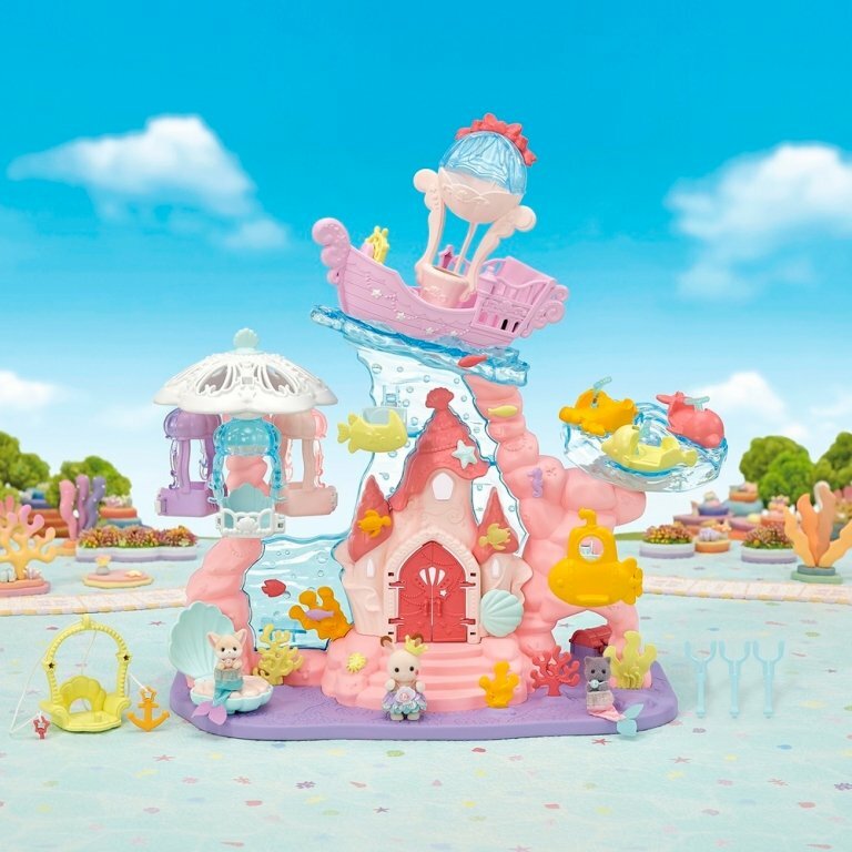 Готовьтесь к подводным приключениям с игровым набором Sylvanian Families «Замок малышей русалок». Это творческий набор на подводную тему с тремя удивительными фигурками для сюжетно-ролевых игр.