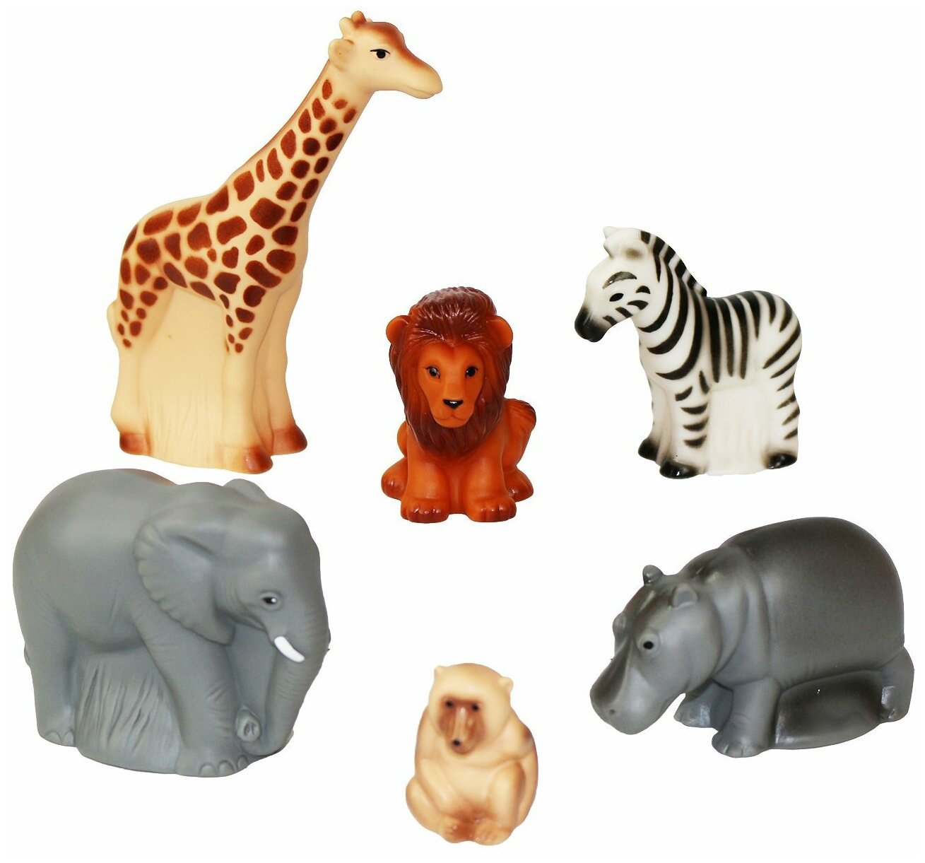 | Состав набора | слон (7,8 см), лев (8 см), жираф (15 см), зебра (8 см), бегемот (6 см), бабуин (4,7 см) |