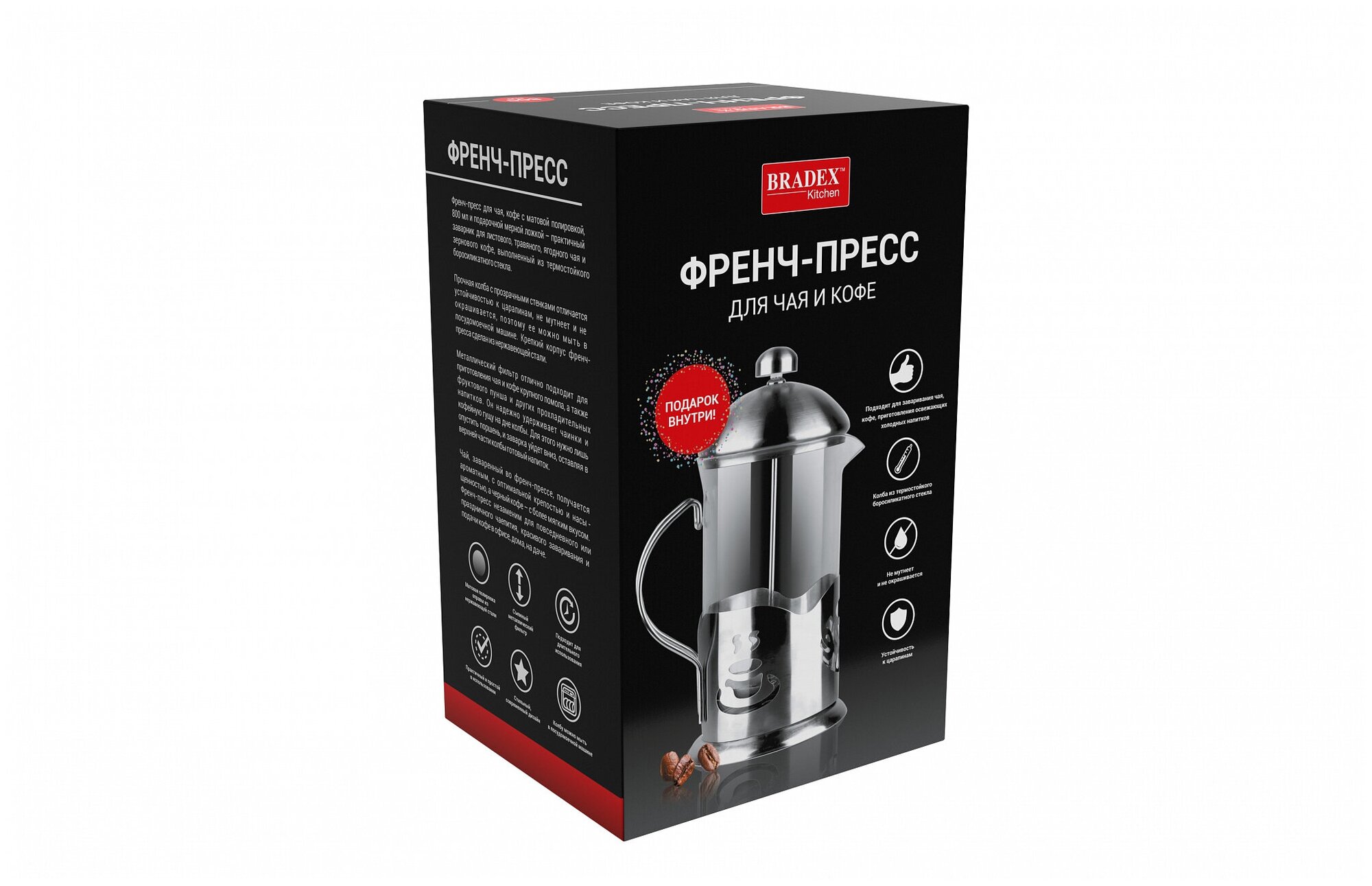Френч-пресс для чая и кофе Bradex (800 мл мерная ложка TK 0614) Френч-пресс 800 мл с мерной ложкой