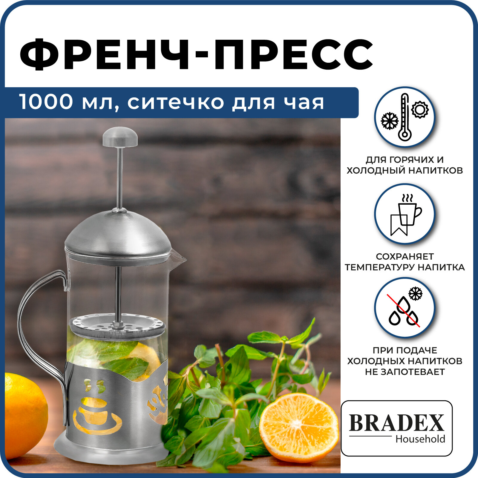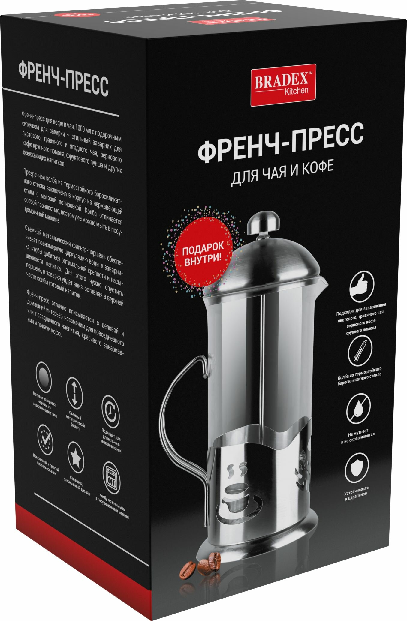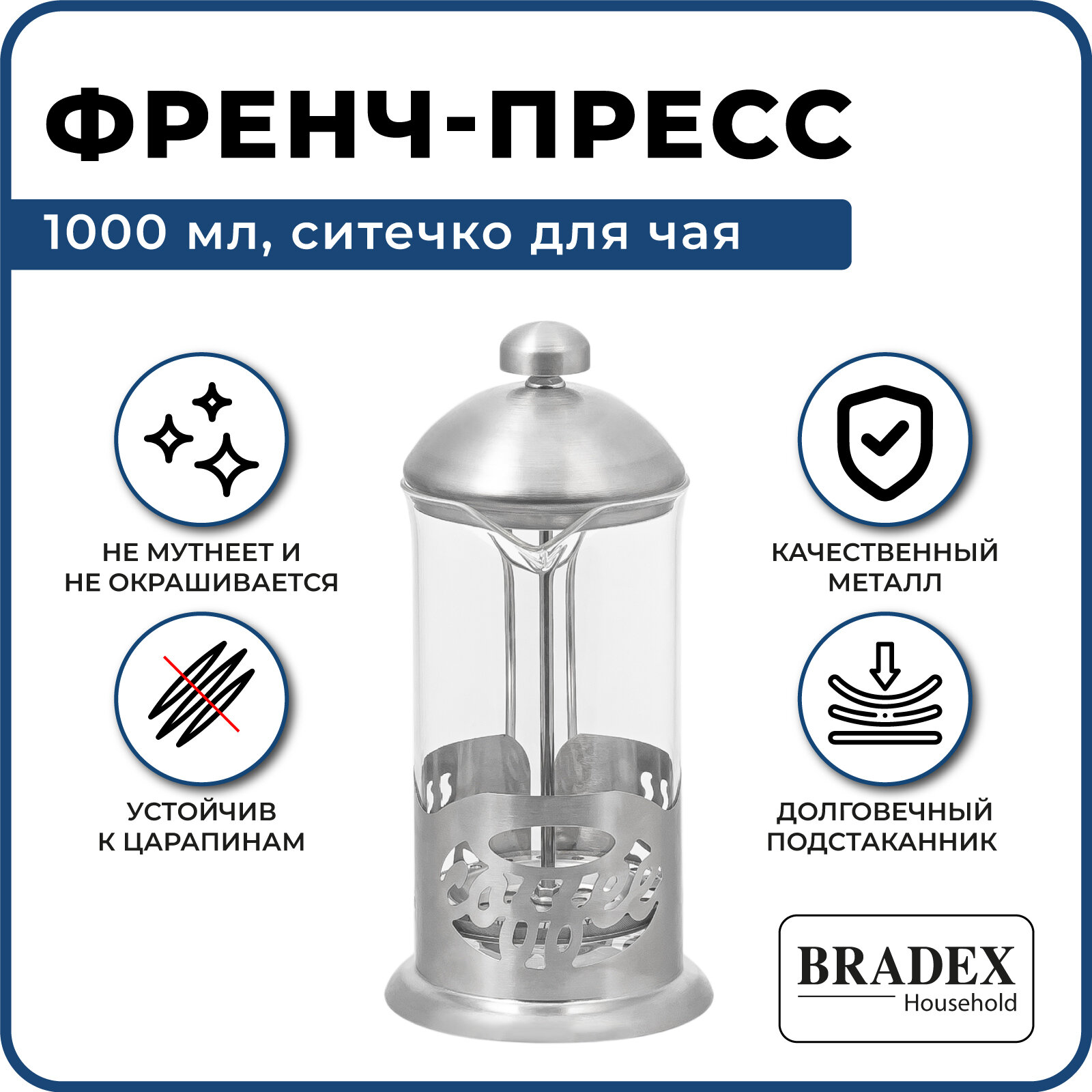 Френч-пресс Bradex Френч-пресс 1000 мл с ситечком для заваривания чая