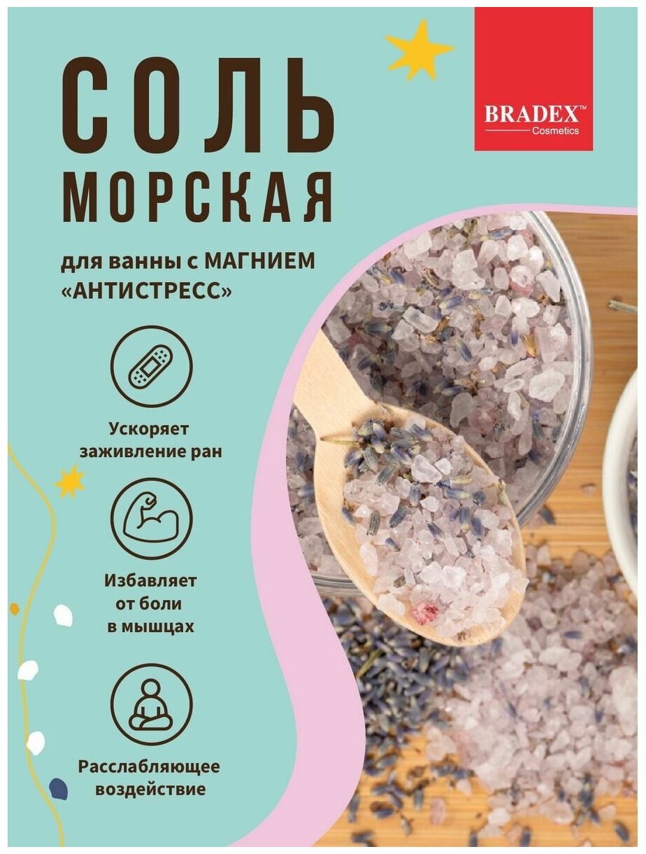 | Полное наименование | Соль морская для ванны Bradex KN 0021 с цветами лаванды |