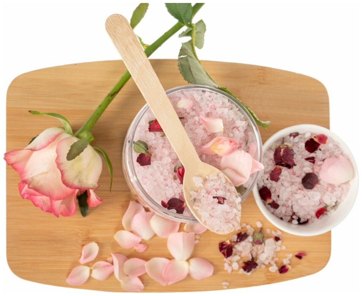 В составе используются природные отложения солей древнего моря. Теплая солевая ванна способствует снижению давления, помогает при головных и суставных болях, ускоряет заживление ран. Бутоны роз питают и насыщают кожу натуральными эфирными маслами, делают её бархатной и ровной.