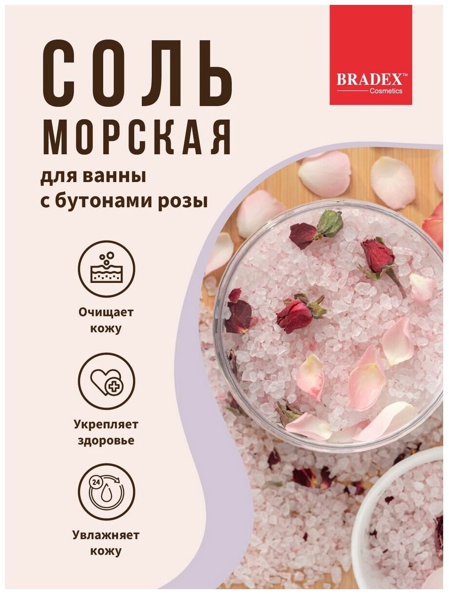 | Полное наименование | Соль морская для ванны Bradex KN 0018 с бутонами розы |