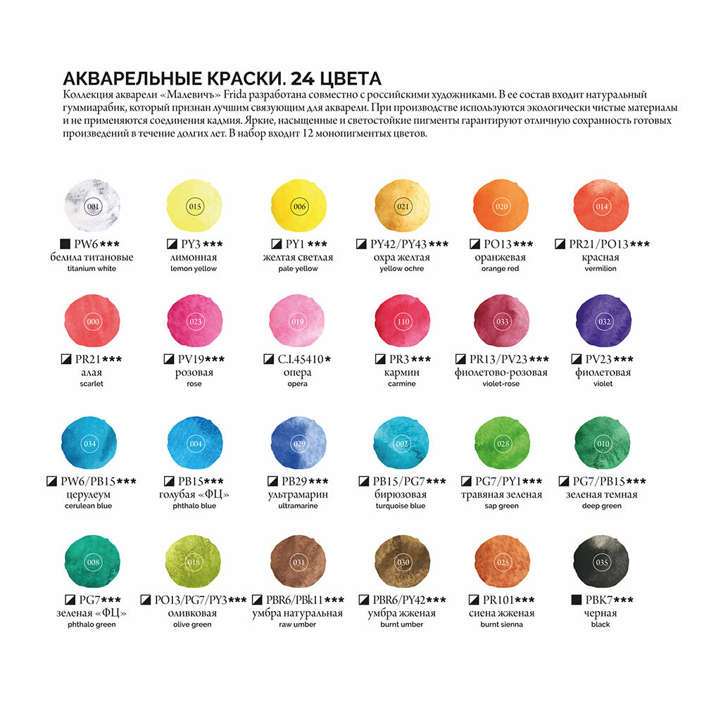 Акварель серия Frida. Коллекция акварели Малевичъ разработана совместно с российскими художниками.