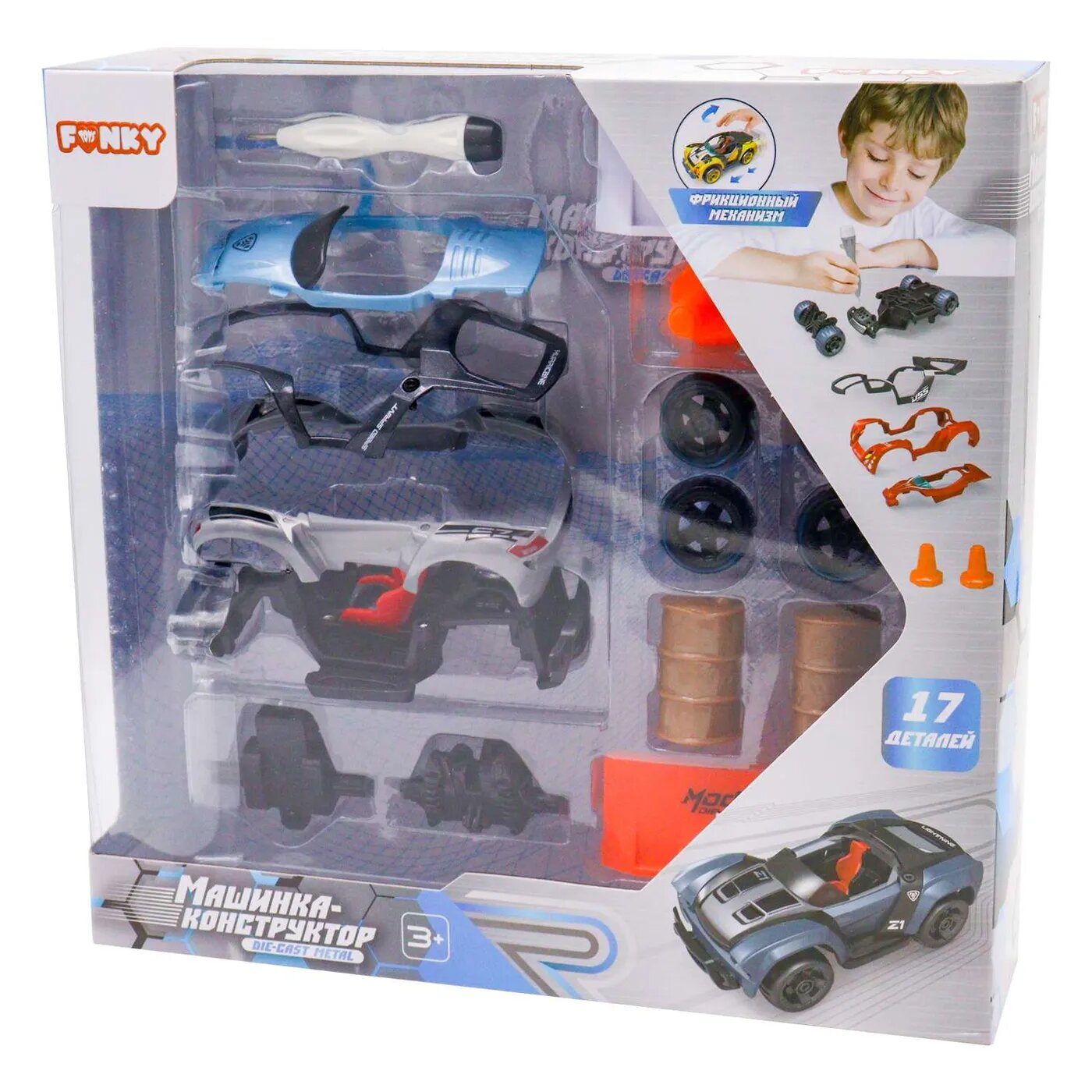 Детская фрикционная металлическая машинка конструктор от Funky Toys в разобранном виде отлично развивает моторику рук ребенка. Благодаря встроенному механизму, машинка может легко передвигаться самостоятельно, для этого досточно потянуть ее назад.