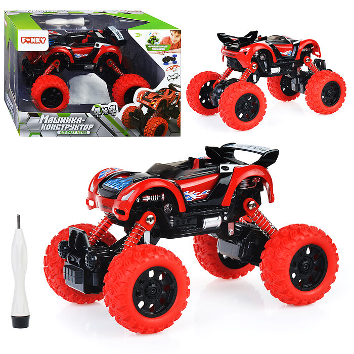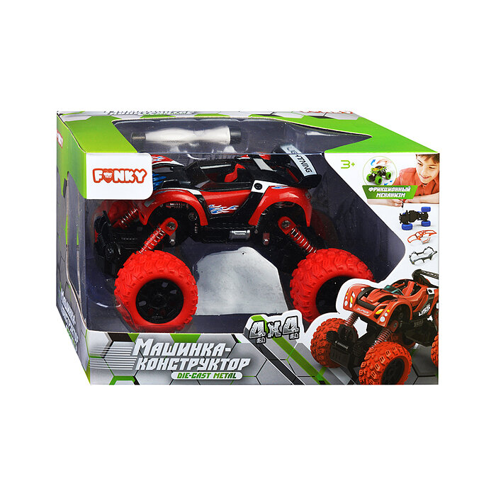 Детская фрикционная машинка конструктор от Funky Toys отлично развивает моторику рук ребенка. Благодаря встроенному механизму, машинка может легко передвигаться самостоятельно, для этого досточно потянуть ее назад. Данная модель подойдет не только для игр юных автолюбителей, но может занять достойное место в вашей коллекции конструкторов.