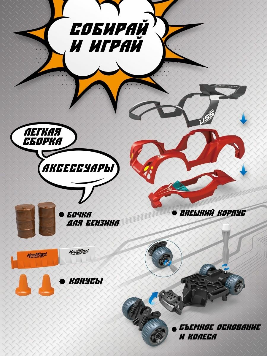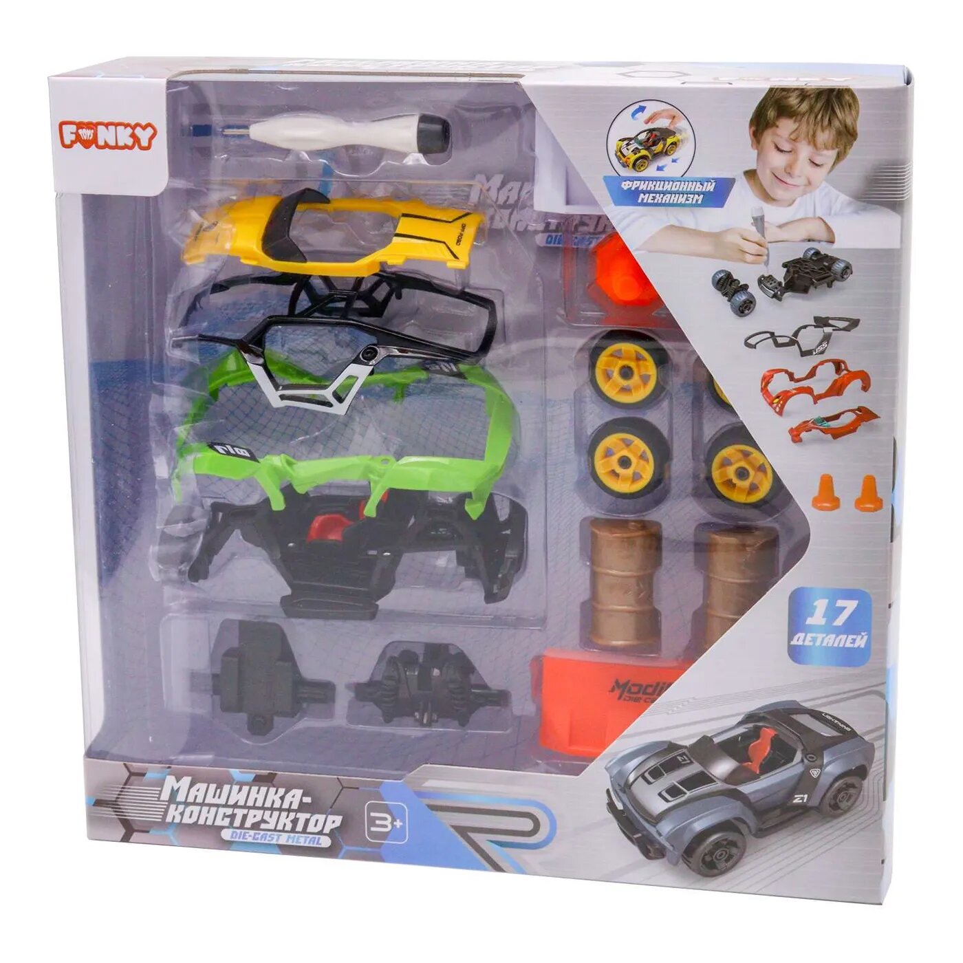 Детская фрикционная металлическая машинка конструктор от Funky Toys в разобранном виде отлично развивает моторику рук ребенка. Благодаря встроенному механизму, машинка может легко передвигаться самостоятельно, для этого досточно потянуть ее назад.