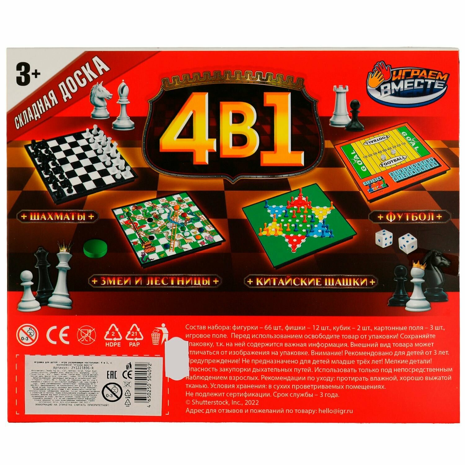 Набор настольных игр 4 в 1 «Шахматы – китайские шашки - футбол - змеи и лестницы» ТМ «Играем вместе» – увлекательный и полезный досуг детей и взрослых: