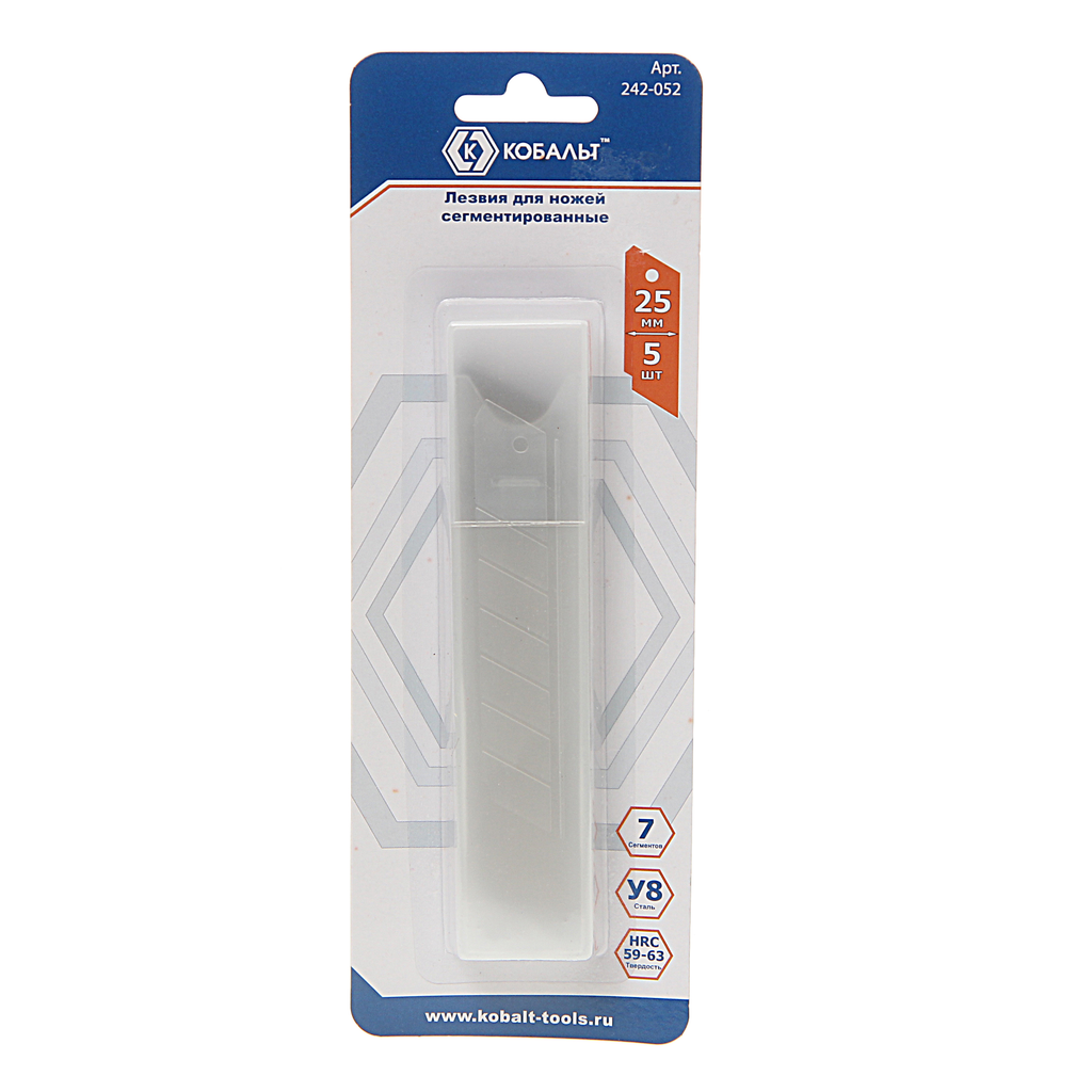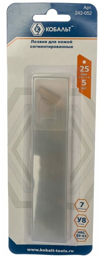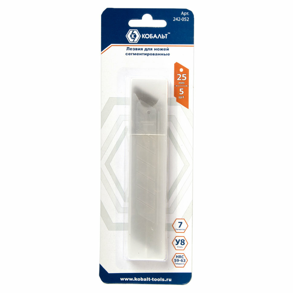 Лезвия сменные для ножей 25 мм, сегментированные, 7 сегментов, сталь У8 (5 шт.) Кобальт соответствует актуальными запросам потребителей. Доступная цена позволяет без больших материальных затрат решить насущные проблемы.кобальт уделяет серьезное внимание контролю качества продукции. Жесткие требования к используемым сырью и комплектующим, применение современных технологических решений обеспечивают надежность изделий и длительный срок их эксплуатации. Вся продукция проходит процедуру сертификации для подтверждения безопасности и соответствия требованиям нормативных документов и стандартов качества.