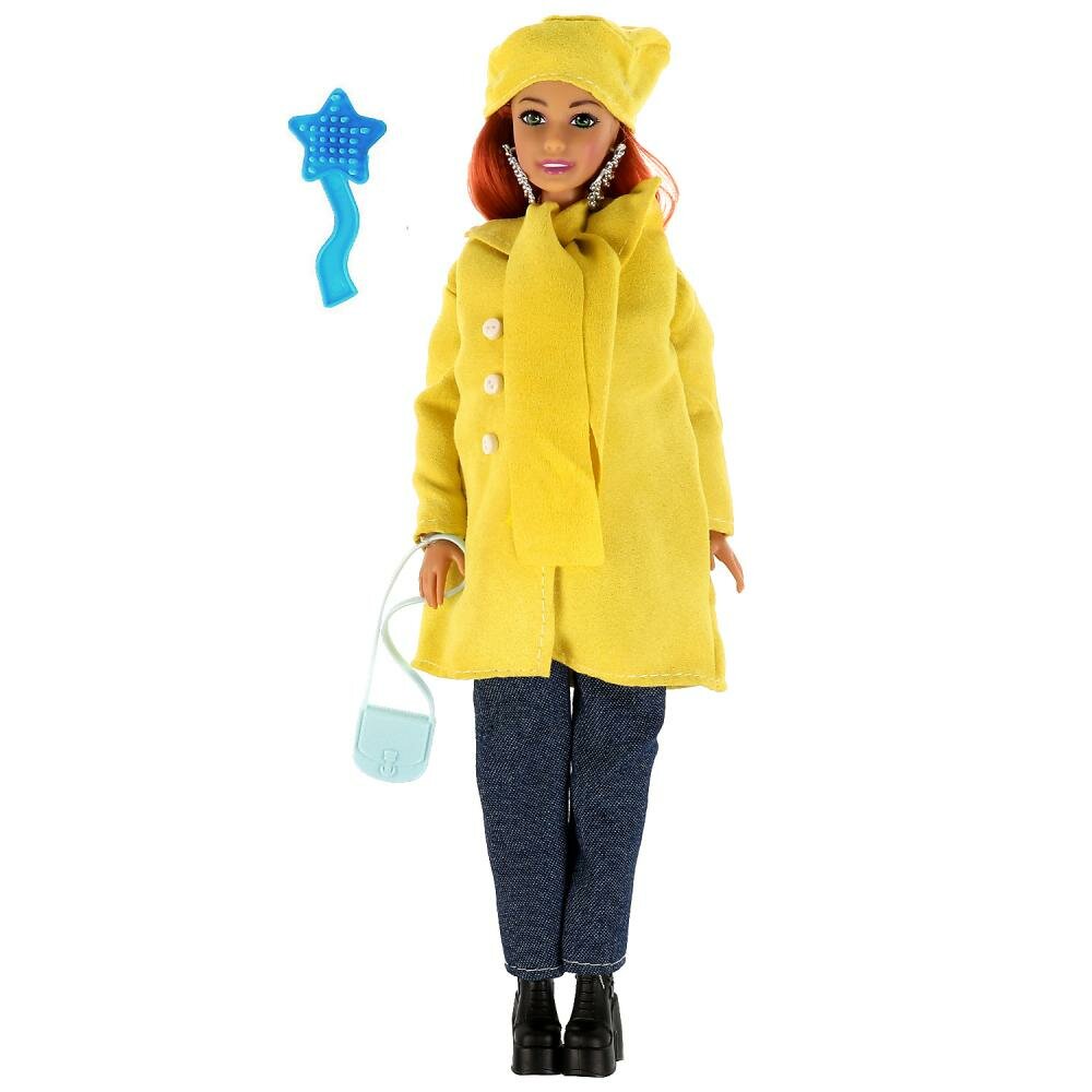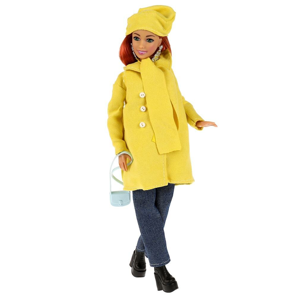Будущая мама София одета в яркое пальто с чёрными брюками. Образ куколки дополняют модный жёлтый шарф, шапочка, крупные серьги и элегантная сумочка. Одежду и аксессуары легко снять и надеть. С такой модной куклой девочке будет интересно и весело играть: благодаря тому, что руки и ноги куклы подвижны, им можно придать любое положение. У Софии длинные красивые волосы, которые хозяйка куклы сможет заплетать в разные причёски. Детально проработанный дизайн игрушки вдохновит девочку на новые игровые сюжеты.