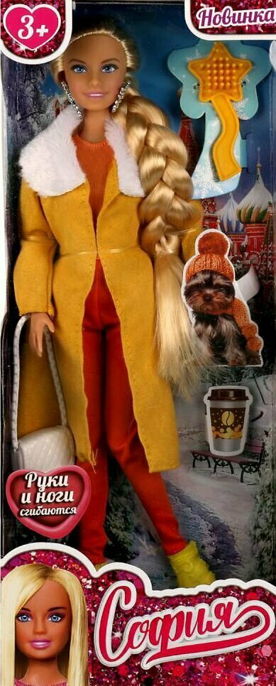 Модница София одета в изящное яркое пальто с меховым воротом. Образ дополняют красивые крупные серьги и элегантная сумочка. С такой модной куклой девочке будет интересно и весело играть: благодаря тому, что руки и ноги куклы подвижны, им можно придать любое положение. У Софии длинные красивые волосы, которые хозяйка куклы сможет заплетать в разные причёски. Детально проработанный дизайн игрушки вдохновит девочку на новые игровые сюжеты.