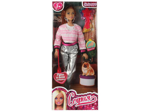 Модница София одета в серебристые брючки, полосатый джемпер и базовую белую кофточку, образ дополняют крупные серьги и элегантная сумочка. Одежду и аксессуары легко снять и надеть. С такой модной куклой девочке будет интересно и весело играть: благодаря тому, что руки и ноги куклы подвижны, им можно придать любое положение. У Софии длинные красивые волосы, которые хозяйка куклы может заплетать в разные причёски. Детально проработанный дизайн игрушки вдохновит девочку на новые игровые сюжеты.