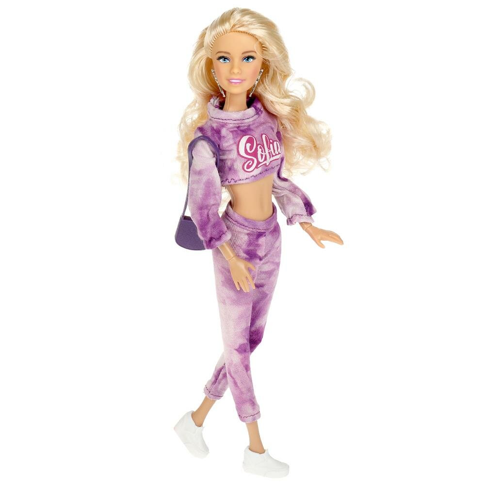 Модница София одета в стильный и яркий спортивный костюм. Одежду и аксессуары легко снять и надеть. С такой модной куклой девочке будет интересно и весело играть: благодаря тому, что руки и ноги куклы подвижны, им можно придать любое положение. У Софии длинные красивые волосы, которые хозяйка кукол сможет заплетать в разные причёски. Детально проработанный дизайн игрушек вдохновит девочку на новые игровые сюжеты.