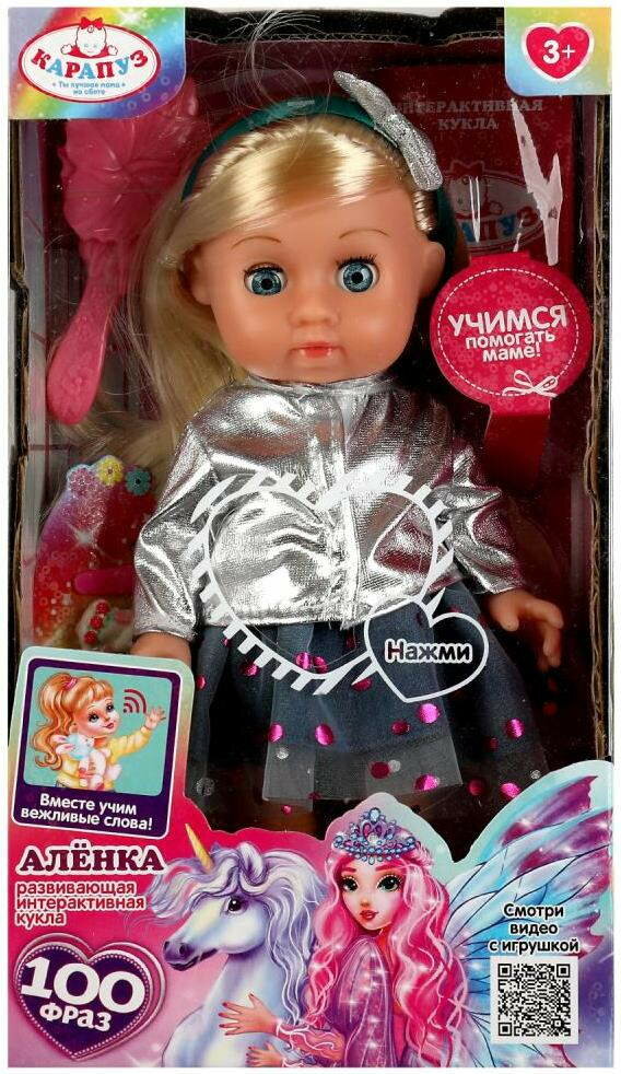 Развивающая интерактивная кукла «Алёнка» ТМ «Карапуз» станет прекрасным подарком для вашей маленькой принцессы: