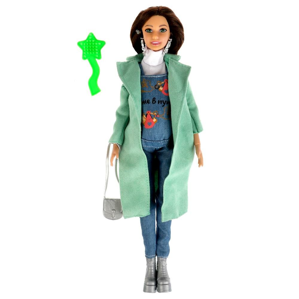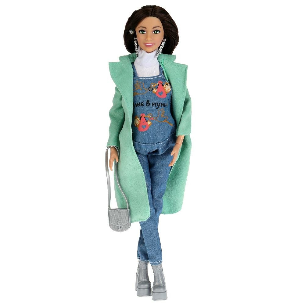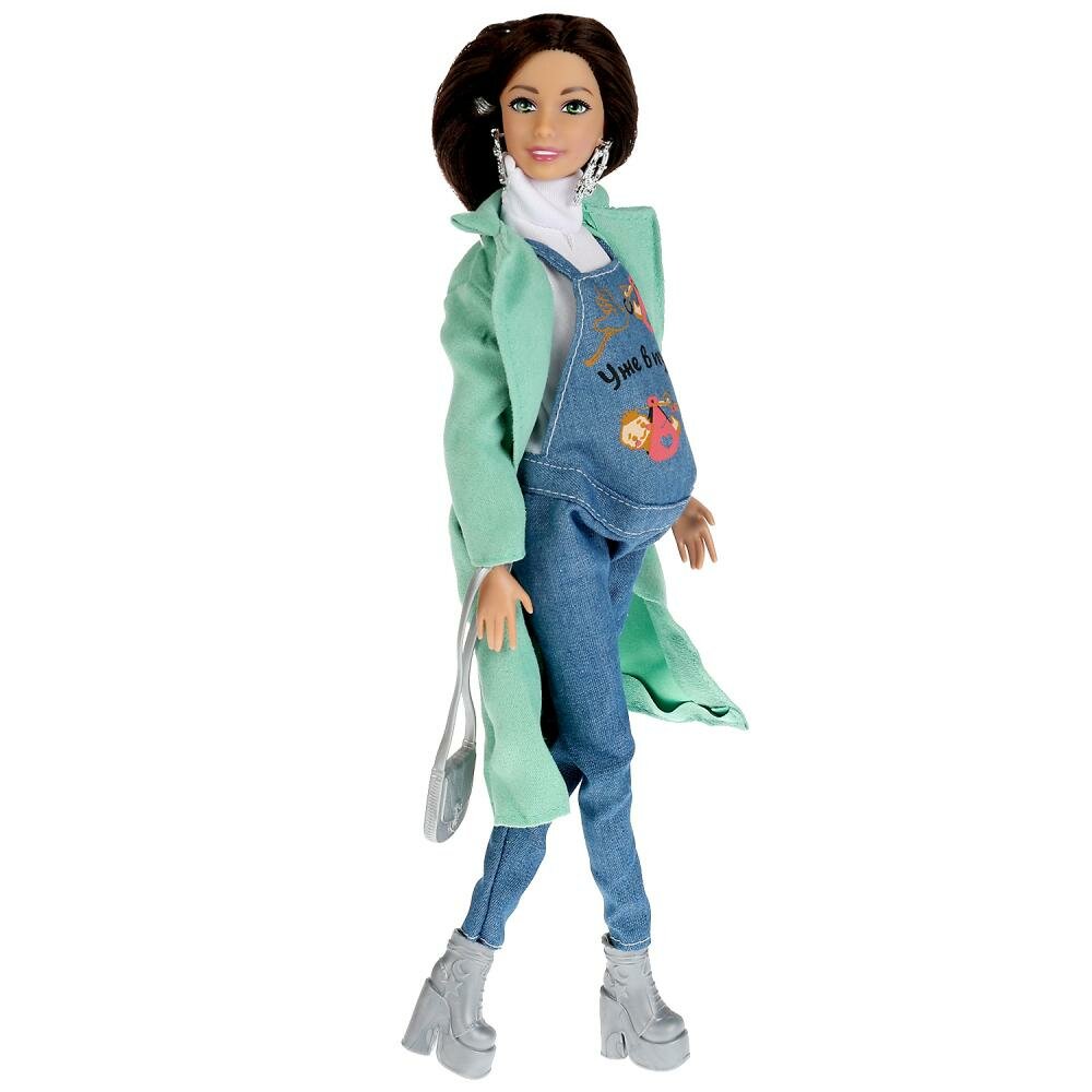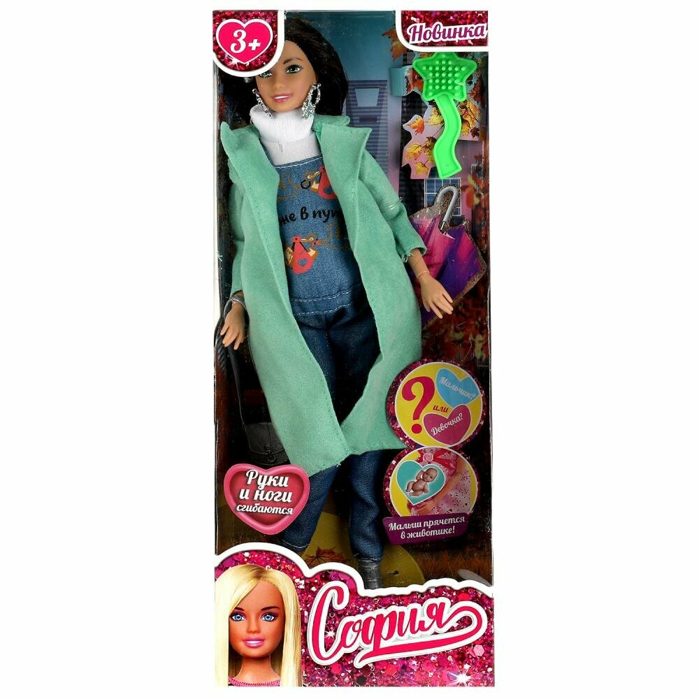 Будущая мама София одета в удобный джинсовый комбинезон, кофту с горлом и зелёное пальто. Образ куколки дополняют модные крупные серьги и элегантная сумочка. Одежду и аксессуары легко снять и надеть. С такой модной куклой девочке будет интересно и весело играть: благодаря тому, что руки и ноги куклы подвижны, им можно придать любое положение. У Софии длинные красивые волосы, которые хозяйка куклы сможет заплетать в разные причёски. Детально проработанный дизайн игрушки вдохновит девочку на новые игровые сюжеты.