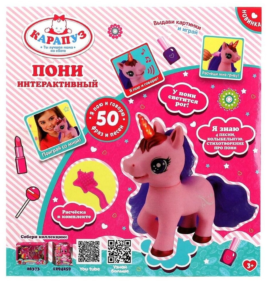 На сегодняшний день товар «Карапуз Пони озвученный 50 фраз и песен 18 см» можно купить с кешбеком в 1 магазине: Яндекс.Маркет