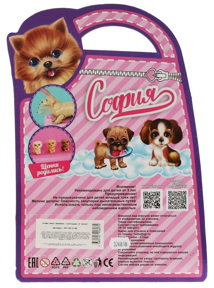 | Комплектация | собака - 1 шт, щенок - 3 шт, миска - 1 шт, упаковка - 1 шт |