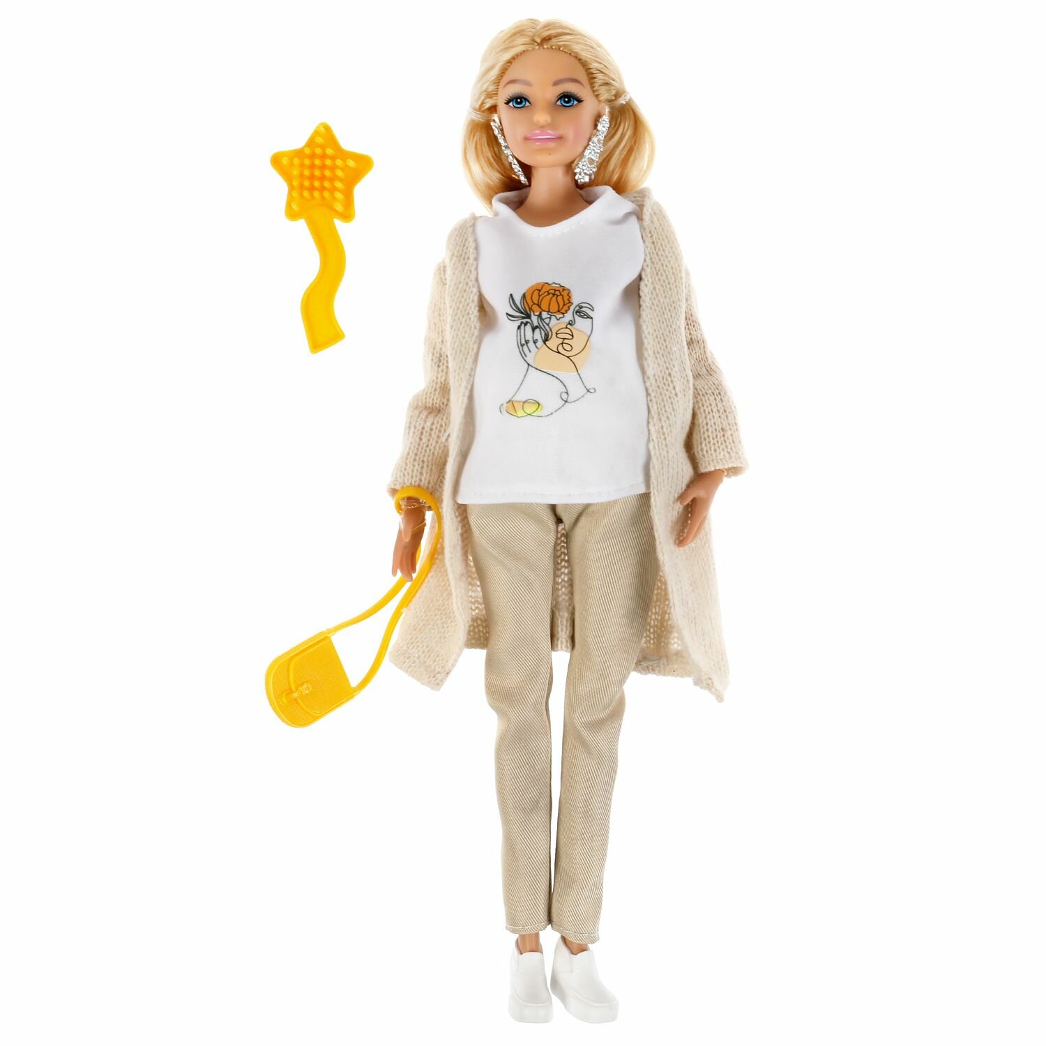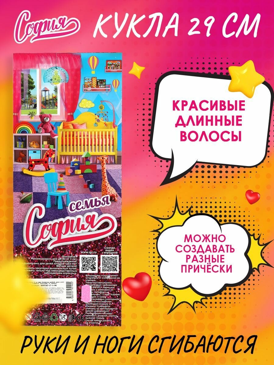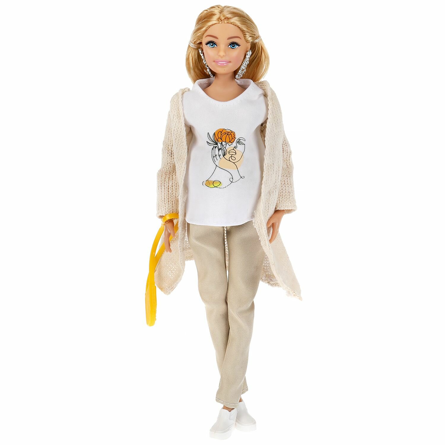 Будущая мама София одета в белую блузу с интересным принтом, светло-бежевые брюки и светлый кардиган. Образ куколки дополняют модные крупные серьги и элегантная сумочка. Одежду и аксессуары легко снять и надеть. С такой модной куклой девочке будет интересно и весело играть: благодаря тому, что руки и ноги куклы подвижны, им можно придать любое положение. У Софии длинные красивые волосы, которые хозяйка куклы сможет заплетать в разные причёски. Детально проработанный дизайн игрушки вдохновит девочку на новые игровые сюжеты.