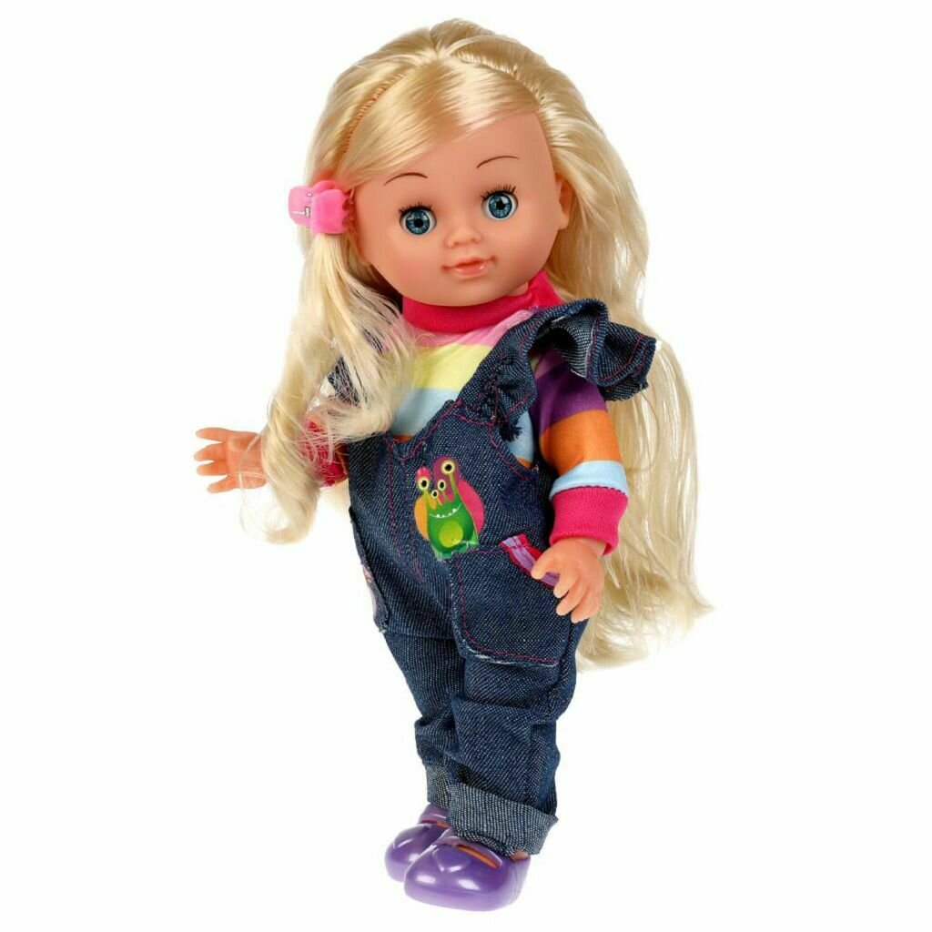 Милая кукла с детально проработанным личиком обязательно понравится малышке. Катюша одета в яркую полосатую кофточку и джинсовый комбинезон. Одежда легко снимается и надевается. У куклы длинные красивые волосы , которые можно укладывать в разнообразные причёски, для этого в наборе имеется расчёска и заколки.