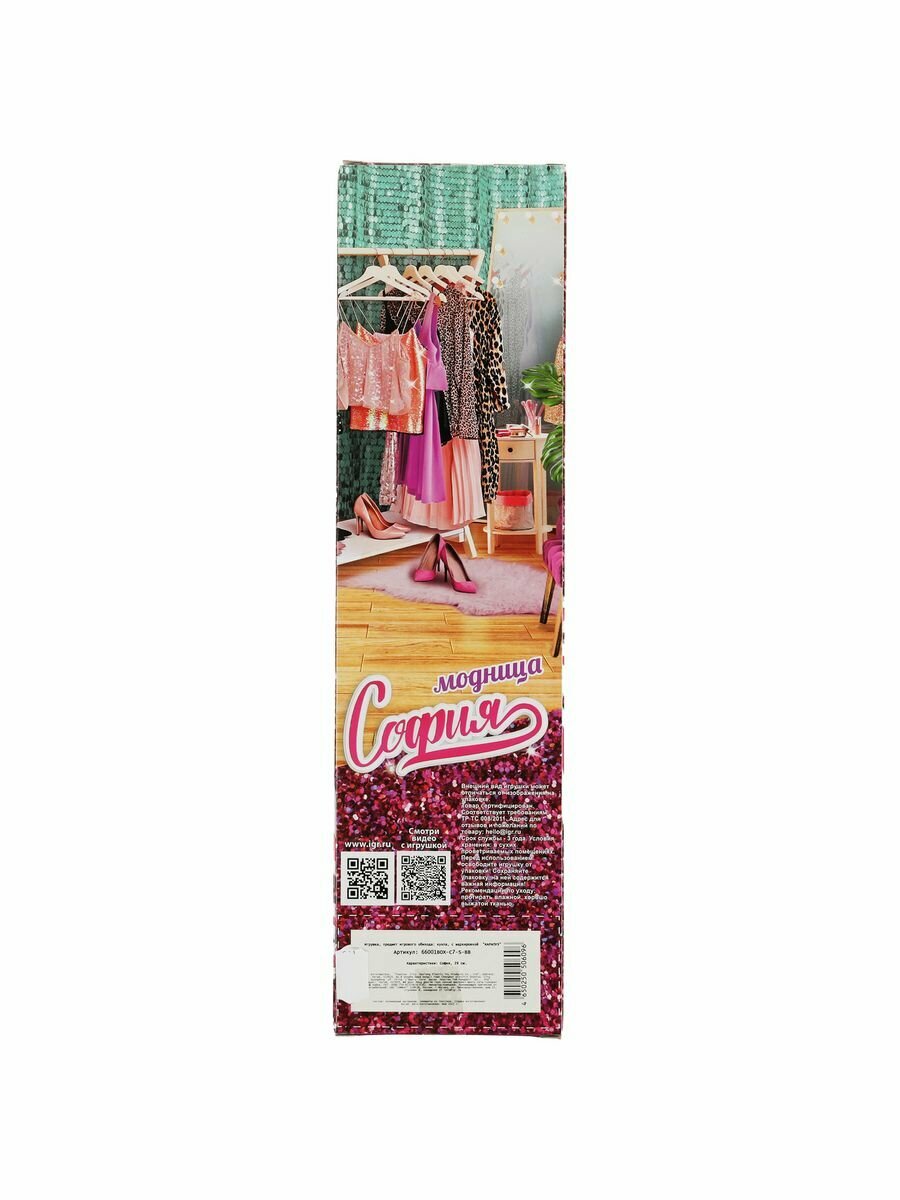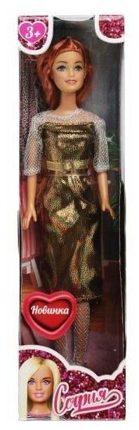 Модница-София одета с стильное золотое платье. Одежду и аксессуары легко снять и надеть. С такой модной куклой девочке будет интересно и весело играть. У Софии длинные красивые волосы, которые хозяйка куклы сможет заплетать в разные причёски. Детально проработанный дизайн игрушки вдохновит девочку на новые игровые сюжеты.