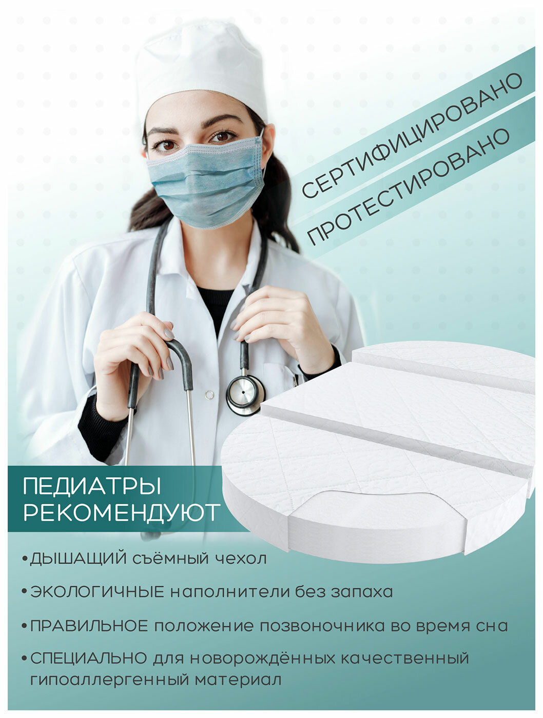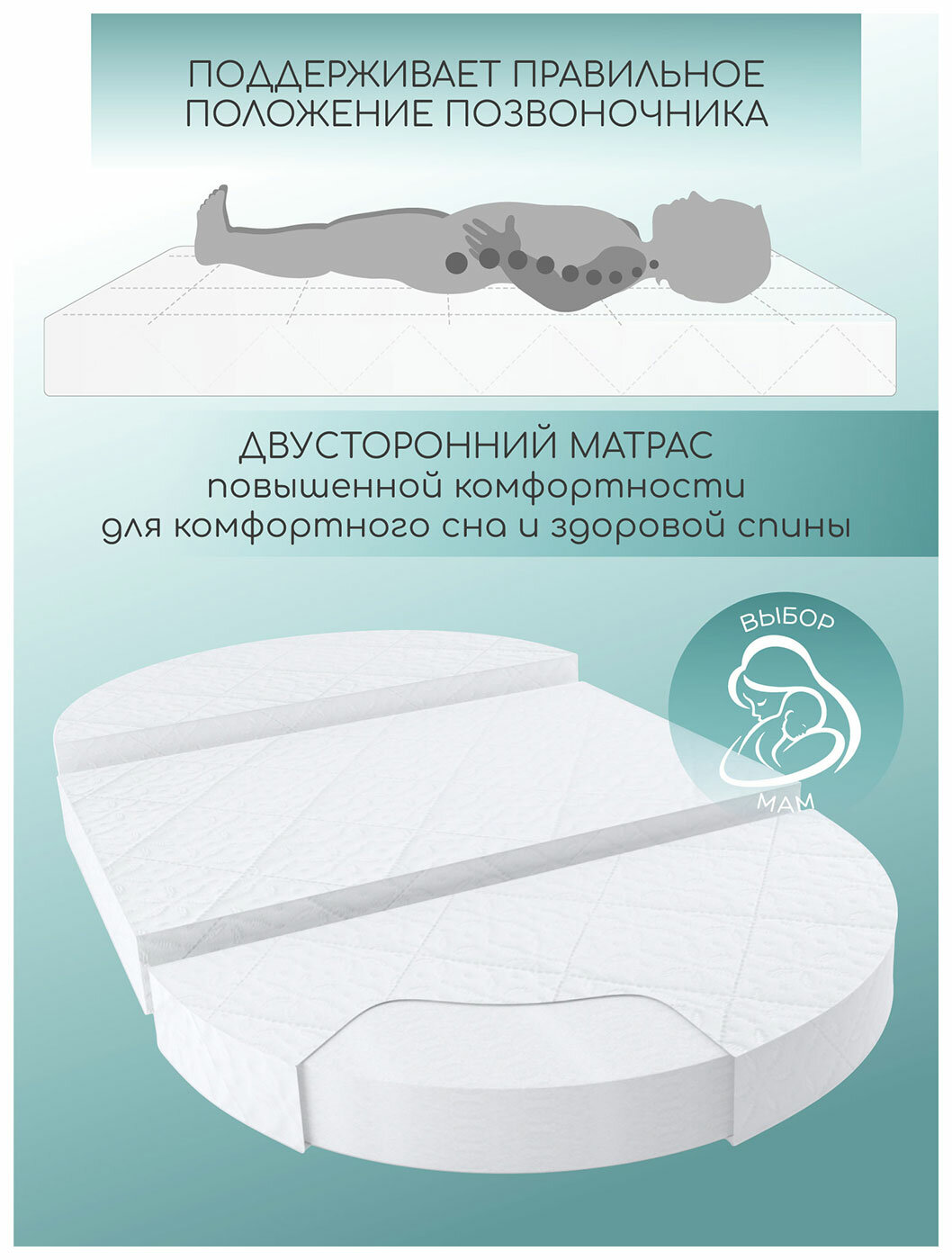 Детский матрас AmaroBaby повышенной комфортности. Матрас для кровати - трансформер подойдет для овальной и круглой формы кроватей. Современный наполнитель холлкон не вызывает аллергии, не впитывает влаги и запахов, не накапливает статическое напряжение. И он прекрасно держит тепло.