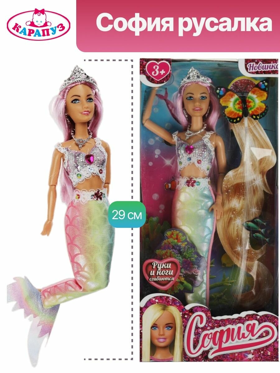 Сервис сравнения цен СкидкаГИД предлагает сравнить цены на товар «Карапуз Кукла София русалка 29 см 66001M-LH4-S-BB»