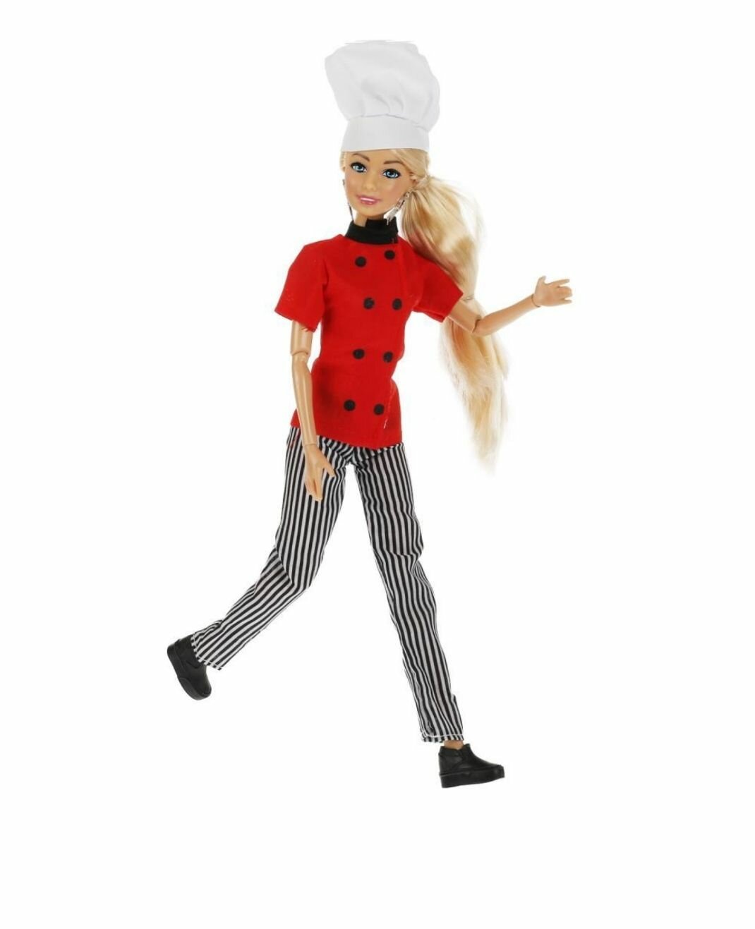 Модный повар София одета в красный китель с чёрной отделкой, полосатые брюки и поварской колпак. Образ дополняют стильные крупные серьги. Одежду и аксессуары легко снять и надеть. С такой модной куклой девочке будет интересно и весело играть: благодаря тому, что руки и ноги куклы подвижны, им можно придать любое положение. У Софии длинные красивые волосы, которые хозяйка куклы сможет заплетать в разные причёски. Детально проработанный дизайн игрушки вдохновит девочку на новые игровые сюжеты.