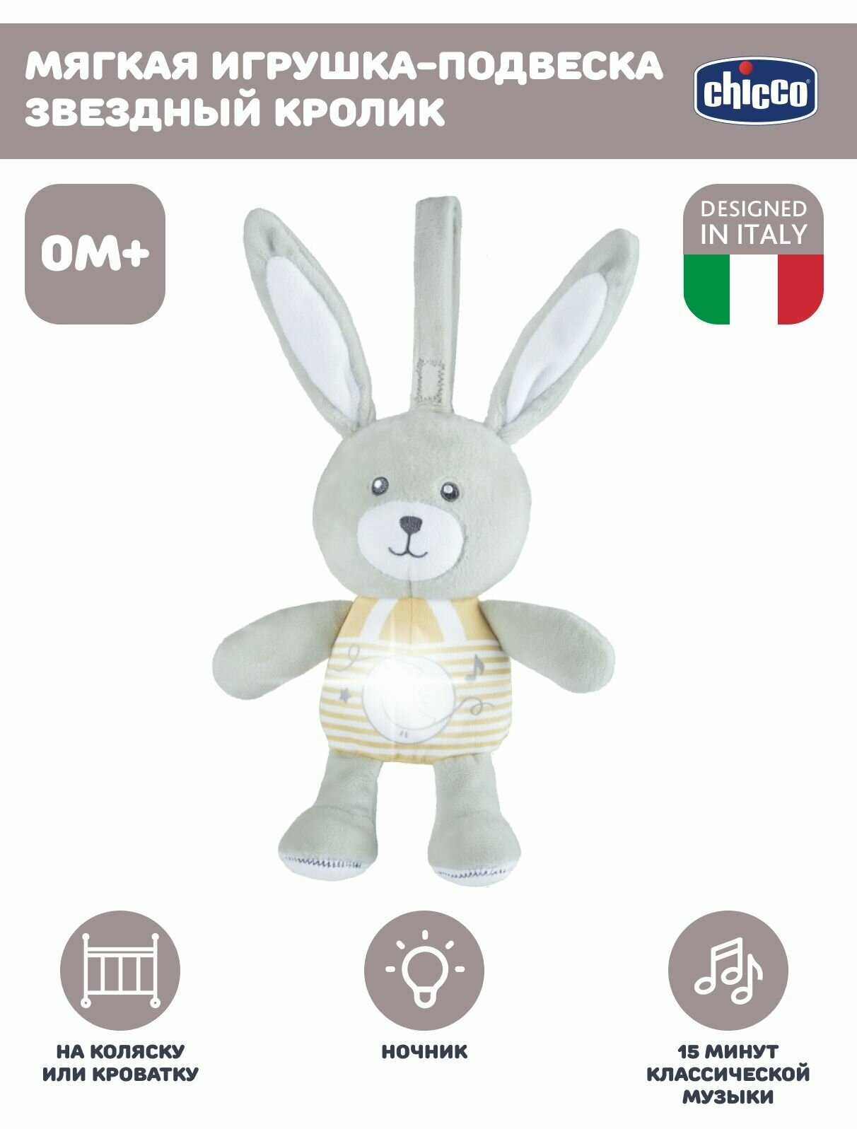 Развивающая игрушка-подвеска Chicco Звездный Кролик 11129 Мягкая игрушка-ночник Звездный кролик (размер: маленькая)
