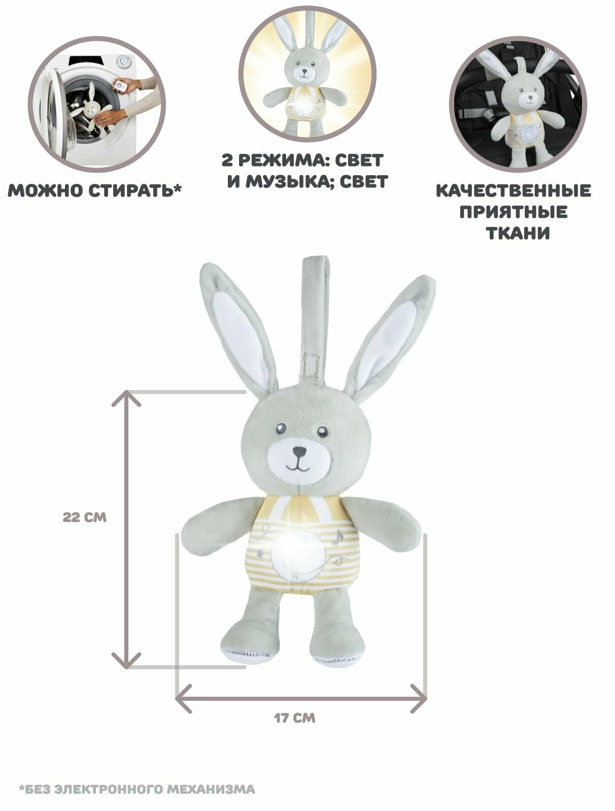 Мягкая музыкальная игрушка Звездный кролик станет первым другом малыша.