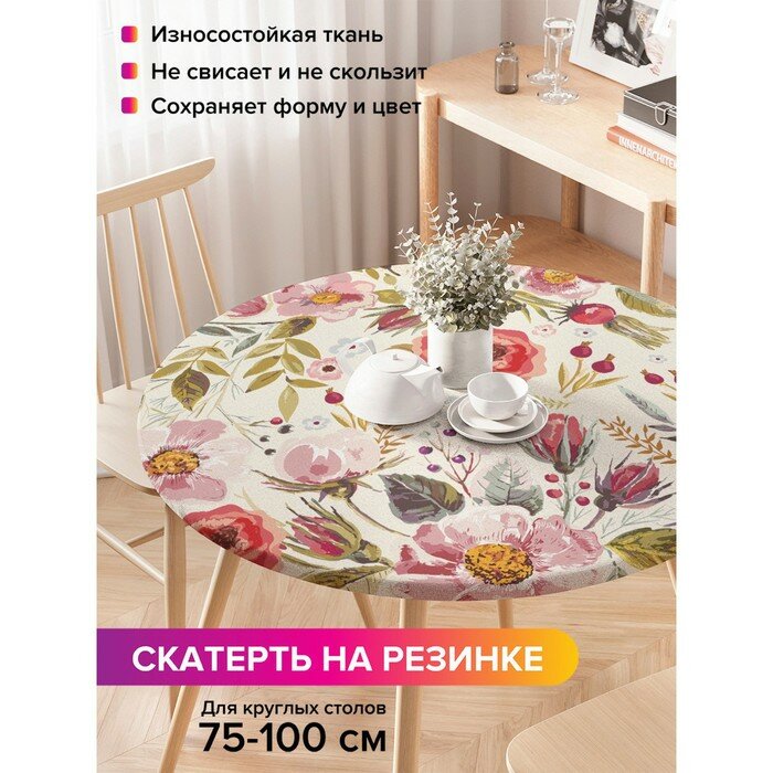 Круглая кухонная скатерть на резинке JoyArty на круглый стол диаметром 75-100 см. Скатерть на кухонный стол Цветочная солянка 100-75 см