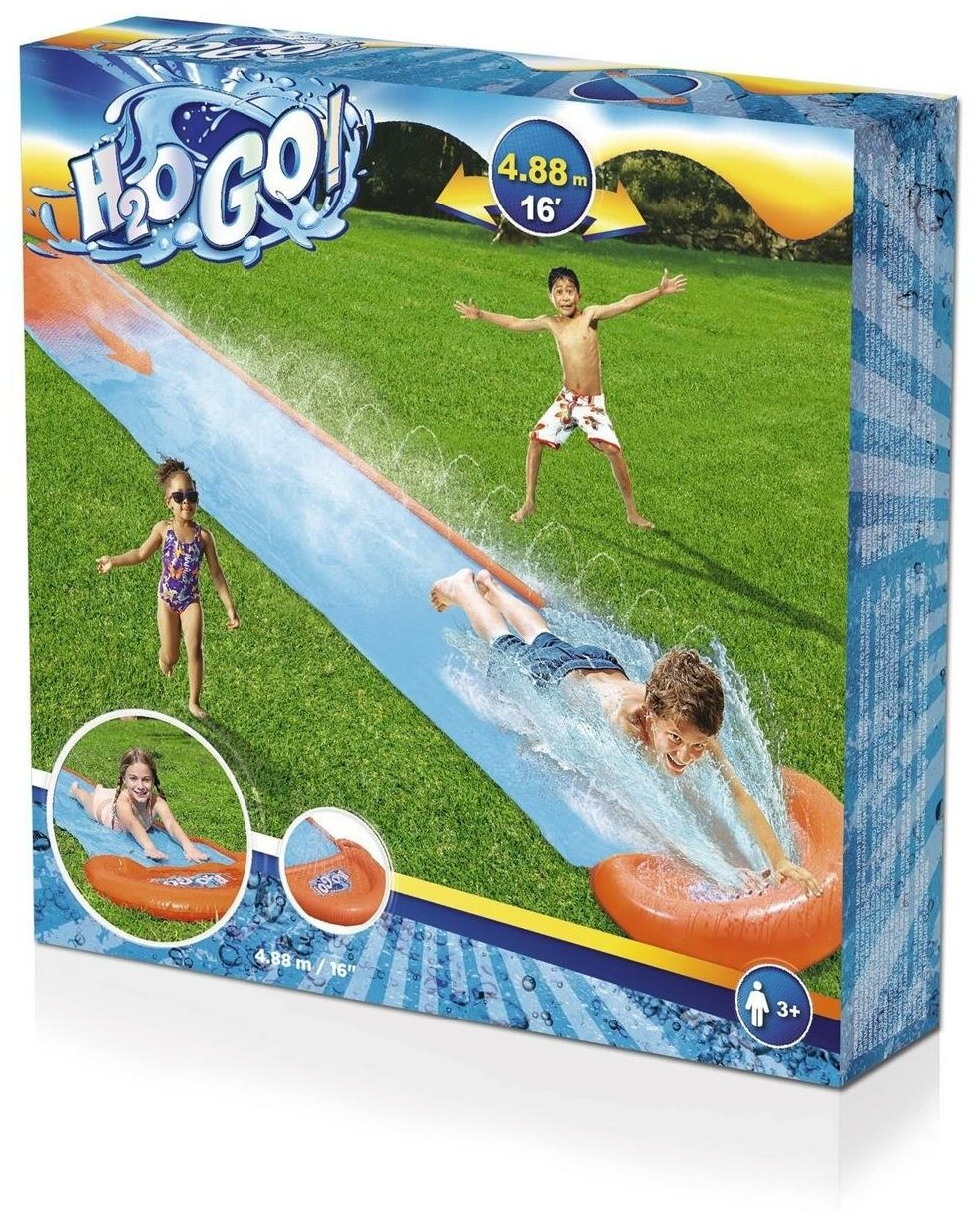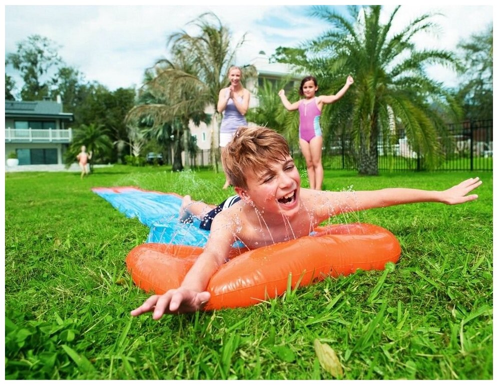 Водная дорожка для скольжения длиной почти пять метров впечатлит ваших детей. Направьте на поверхность воду из шланга и положите дорожку под уклон, и дети смогут легко по ней скатываться. Дорожка гладкая на ощупь, подходит для детей с 3 лет. Выполнена из безопасного винила. Все что нужно для получения ярких эмоций, разбежаться и прыгнуть на дорожку, чтобы скатиться.