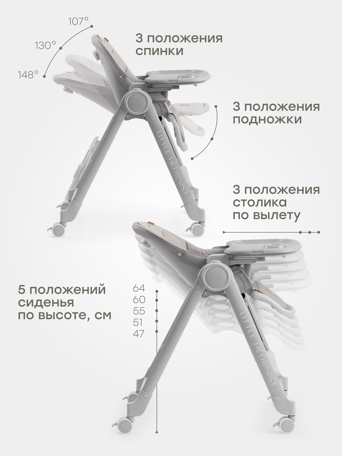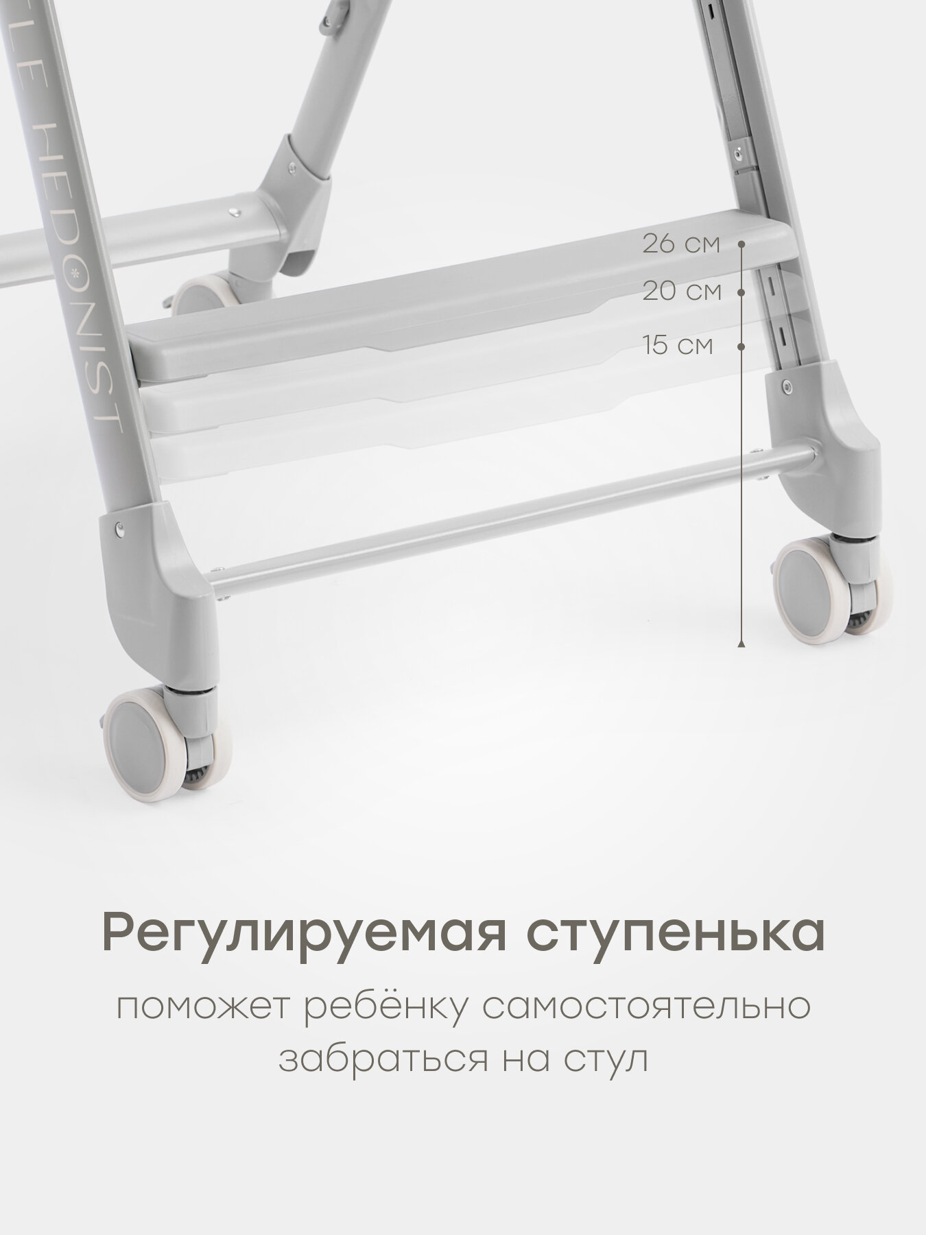 Практичный, удобный, стильный и развивающий - он регулируется по высоте сидения, подножки, ступенек и наклону спинки. Малышам будет комфортно в положении «шезлонг», а дети постарше сами заберутся в стульчик с помощью ступеньки.